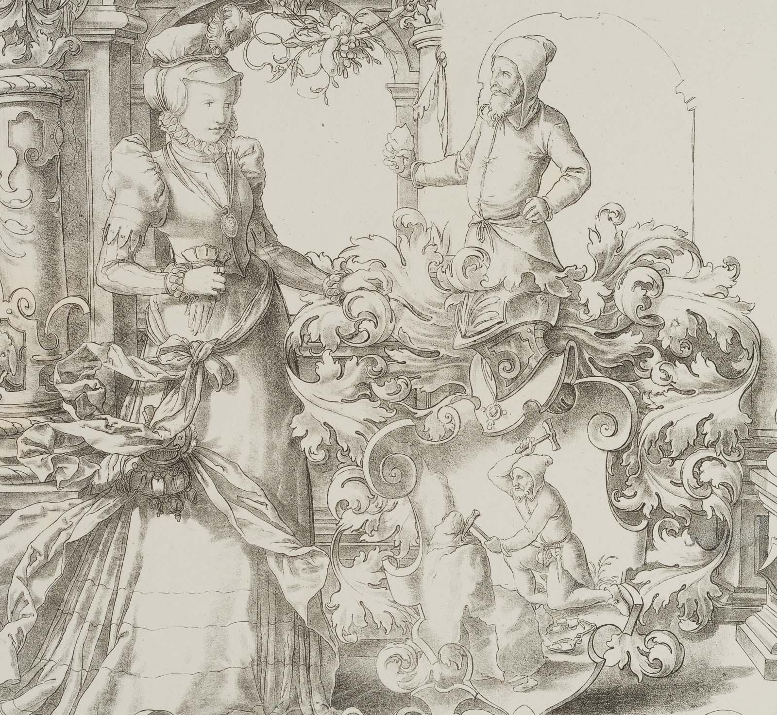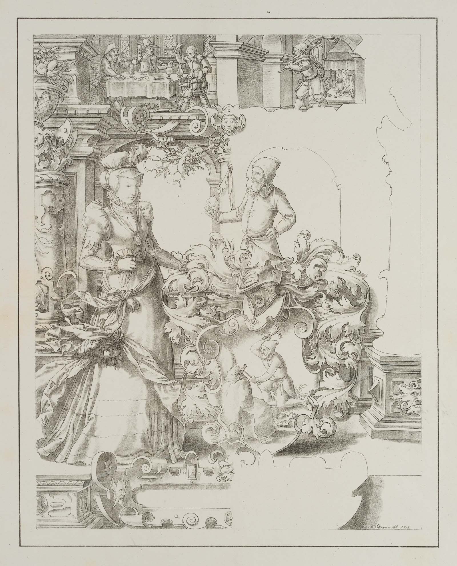 - Bezeichnung: Unten rechts in der Darstellung signiert und datiert “N. Strixner del. 1813.”. Strixner erlernte 1799 bei Dorner das Kupferstechen. Angestellter Zeichner 1803 an der kurfürstlichen Galerie in München. Ab 1806 Versuch in der Lithographie und ab 1810 Herausgabe der Oeuvres Lithographiques. Ab 1820 in Stuttgart.