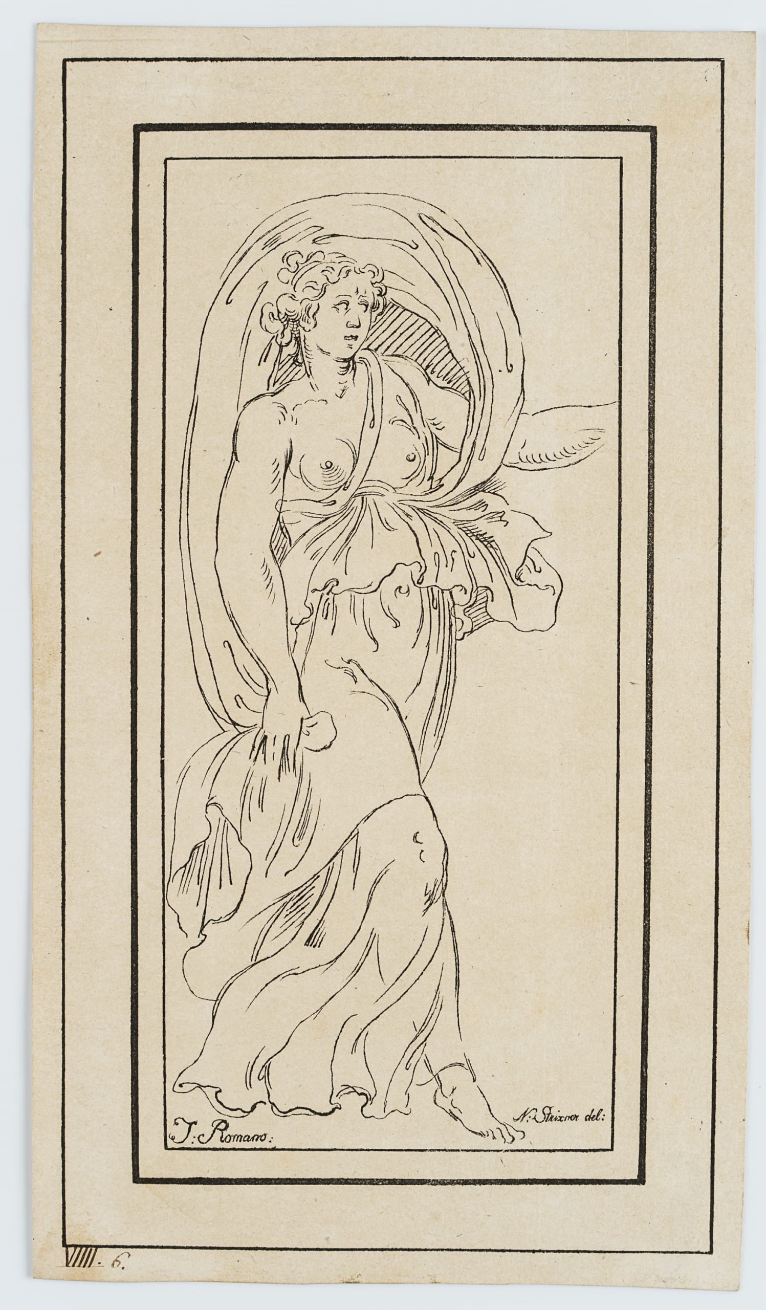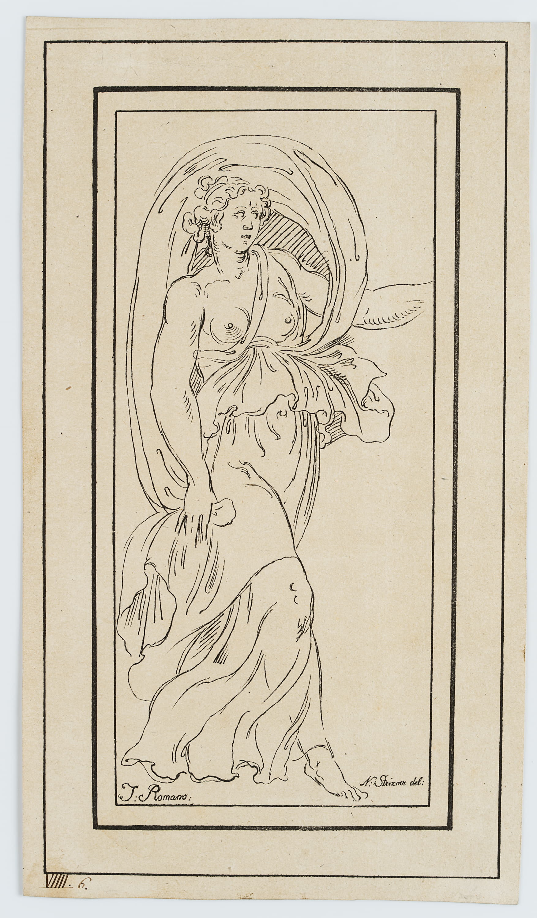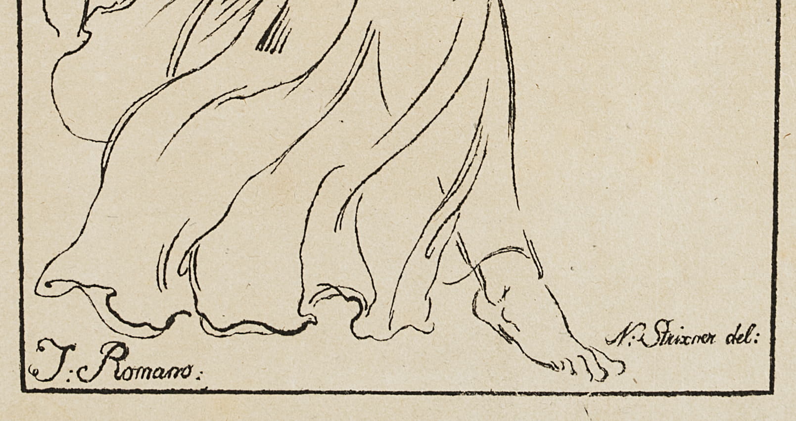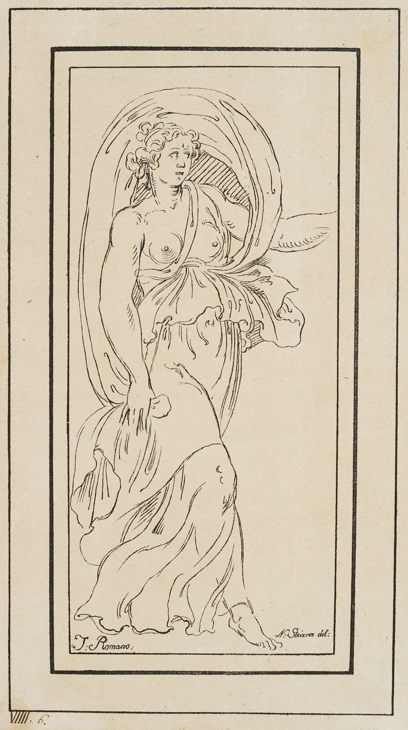 - Inscription: Inscribed and signed at the bottom of the stone: “J: Romano: | N: Strixner del:”, numbered at the bottom left by another hand: “VIIII. 6.”