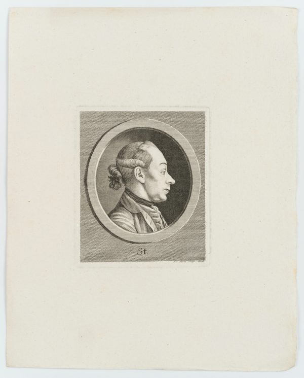 The print is from Johann Caspar Lavater’s Physiognomische Fragmente, zur Beförderung der Menschenkenntniß und Menschenliebe. Between 1775 and 1778, he published the multi-volume work in which human characters are explained on the basis of their physiognomy. Well-known artists such as Daniel Chodowiecki, Johann Rudolph Schellenberg or Johann Heinrich Lips provided models for his collection of physiognomics, which contains numerous portraits of well-known and anonymous people.