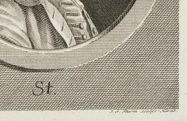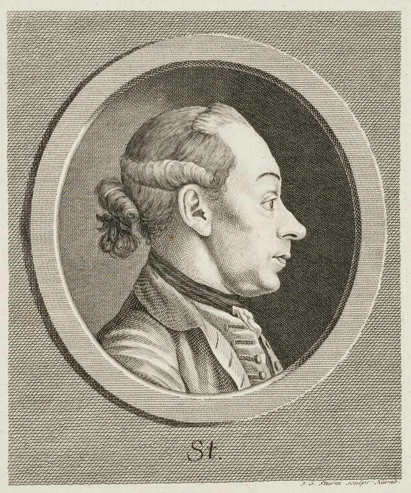 Johann Georg Sturm (1742 Nürnberg – 1793 ebd.), Selbstporträt des Kupferstechers Johann Georg Sturm im Profil, 1775, Kupferstich