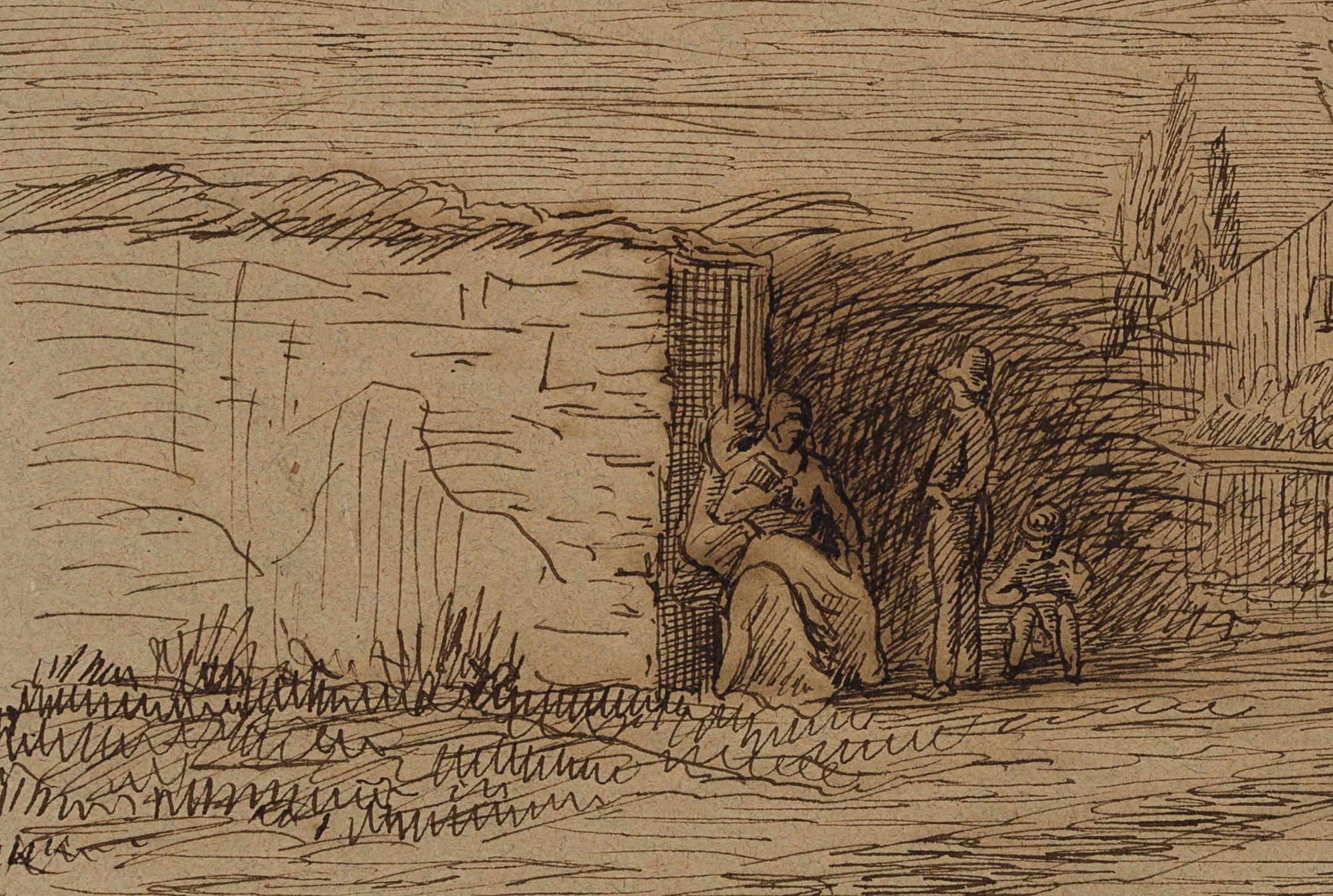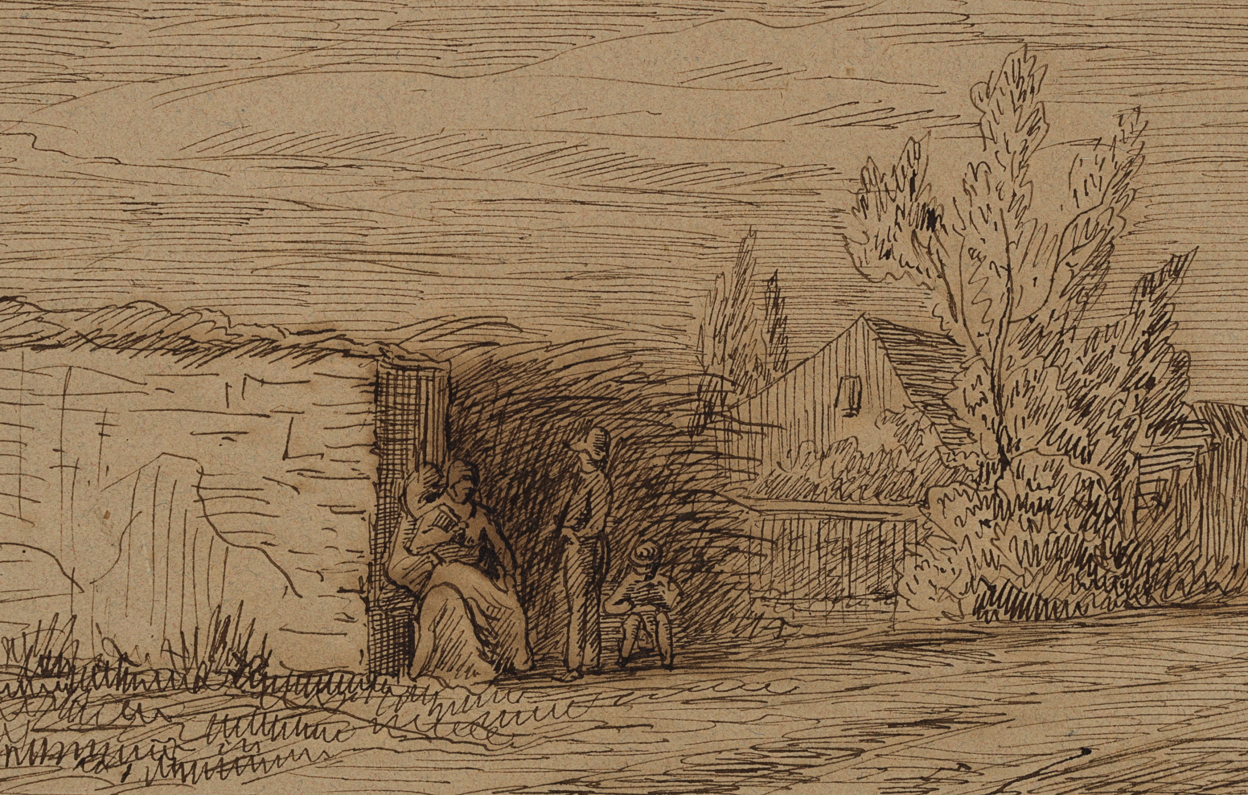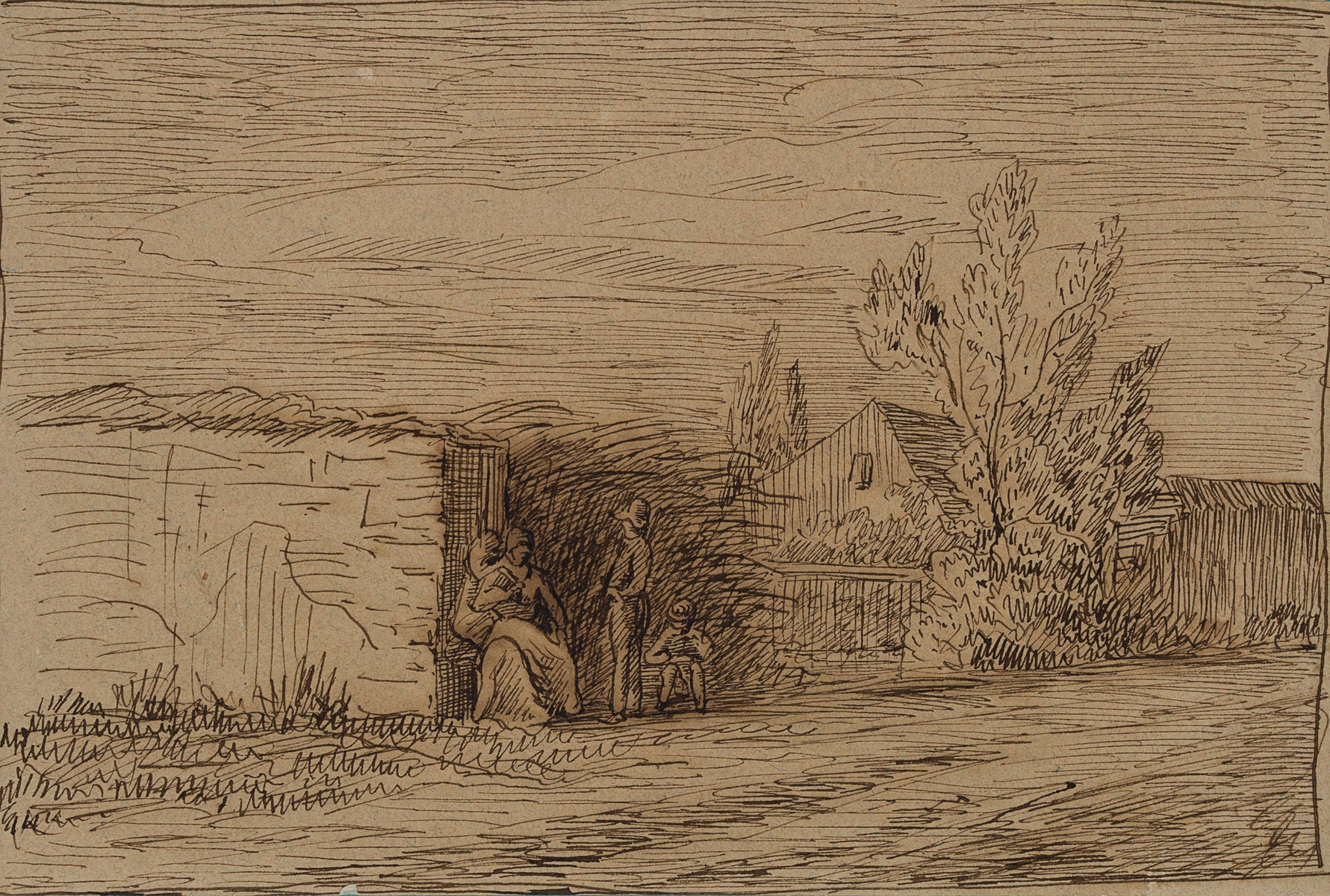 Jean David Sutter (1811 – 1880 ), Street Scene with Group of Figures, c. 1856, Indian ink