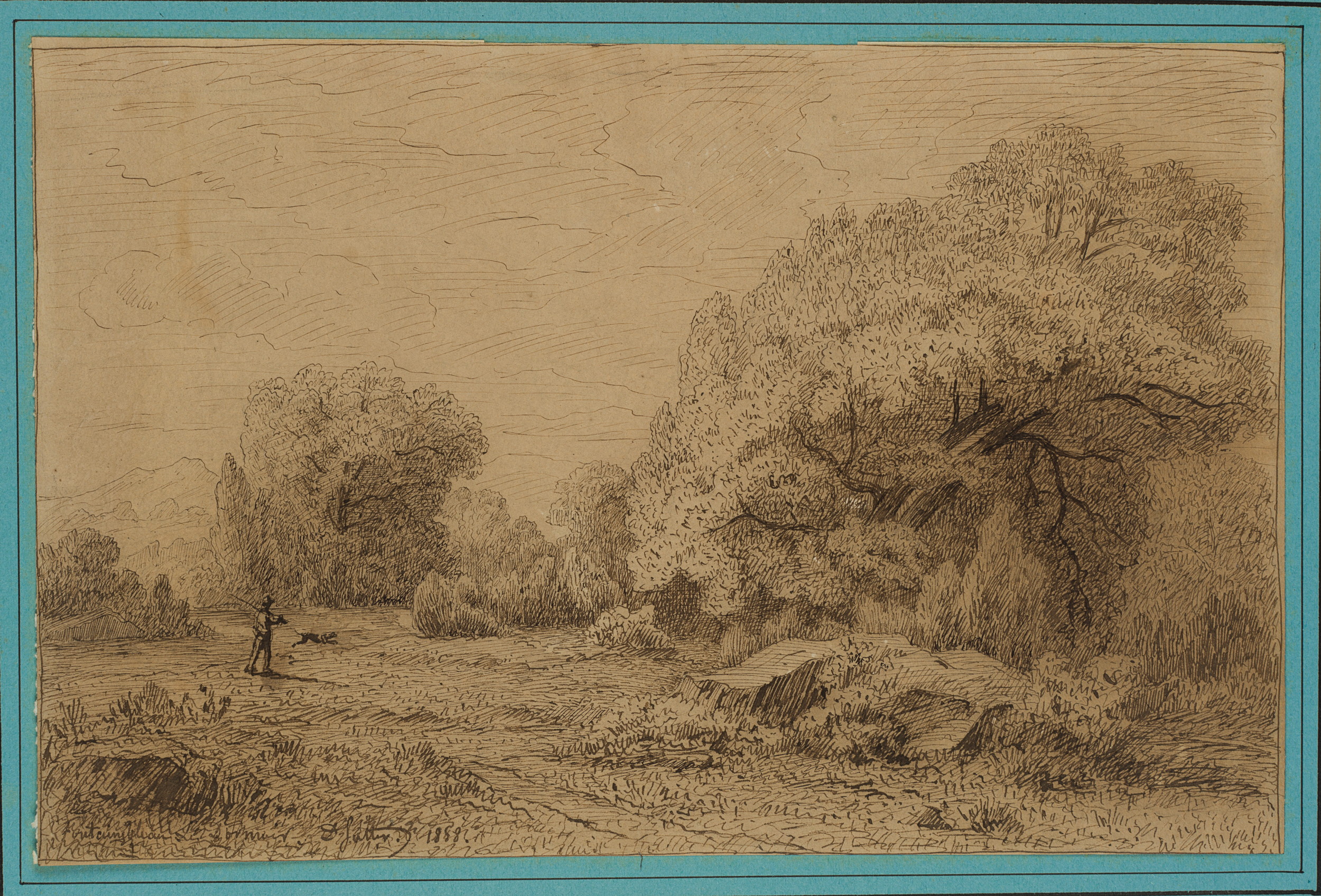 - Schlagworte: Fontainebleau, Naturstück, Waldstück, Wald, Baum, Vegetation, Wanderer, Jäger, Angler, Jagdhund, Frankreich, Île de France, Landschaft, Frankreich, Hund, Romantik, 1850-1899