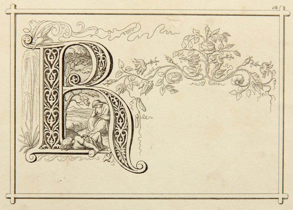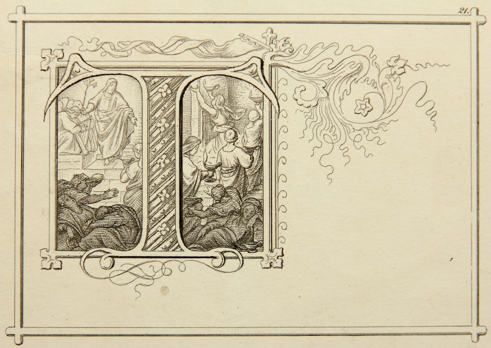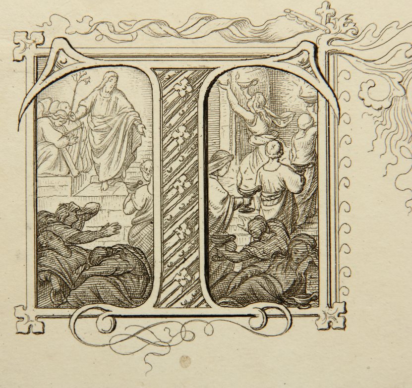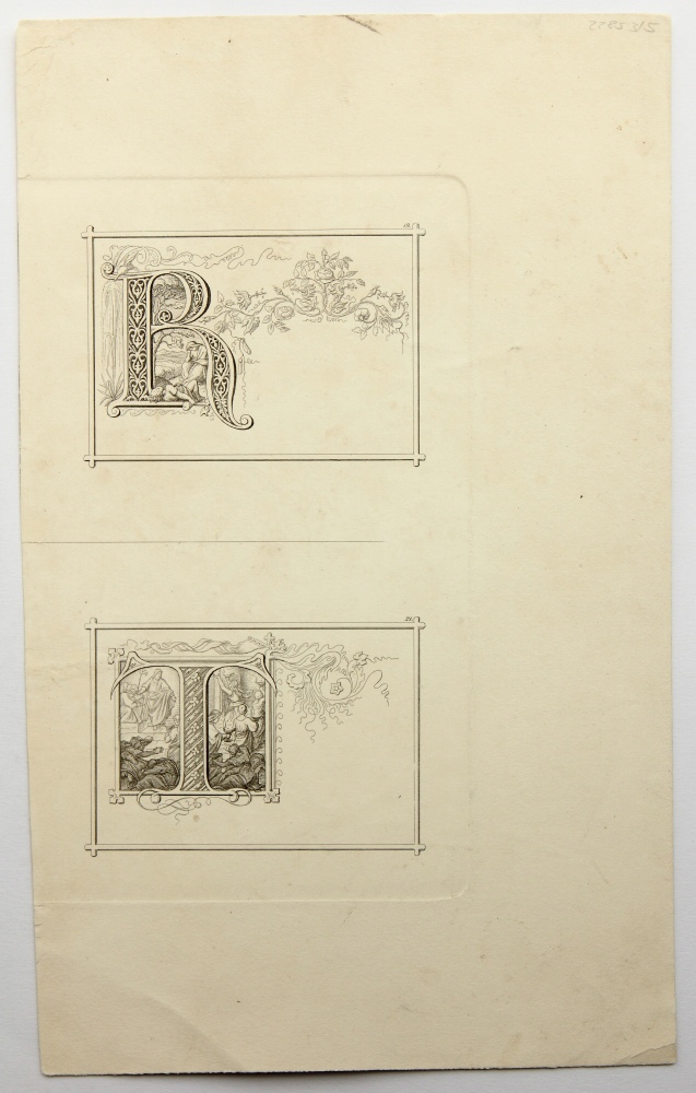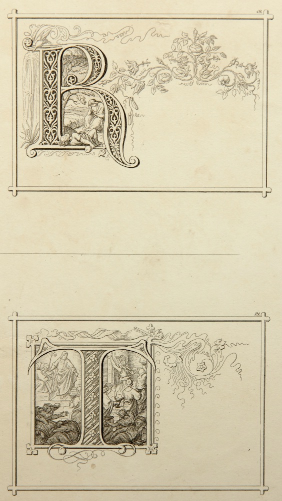 Julius Cäsar Thaeter (1804 Dresden – 1870 München), Initialen, “R” und “T”, mit biblischen Motiven, 19. Jahrhundert, Radierung