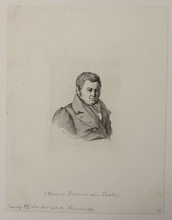 Julius Cäsar Thaeter (1804 Dresden – 1870 München), Porträt des Pfarrer Brenner aus Paehl, 1839, Kupferstich