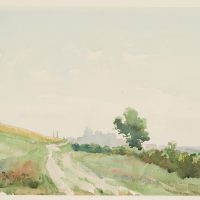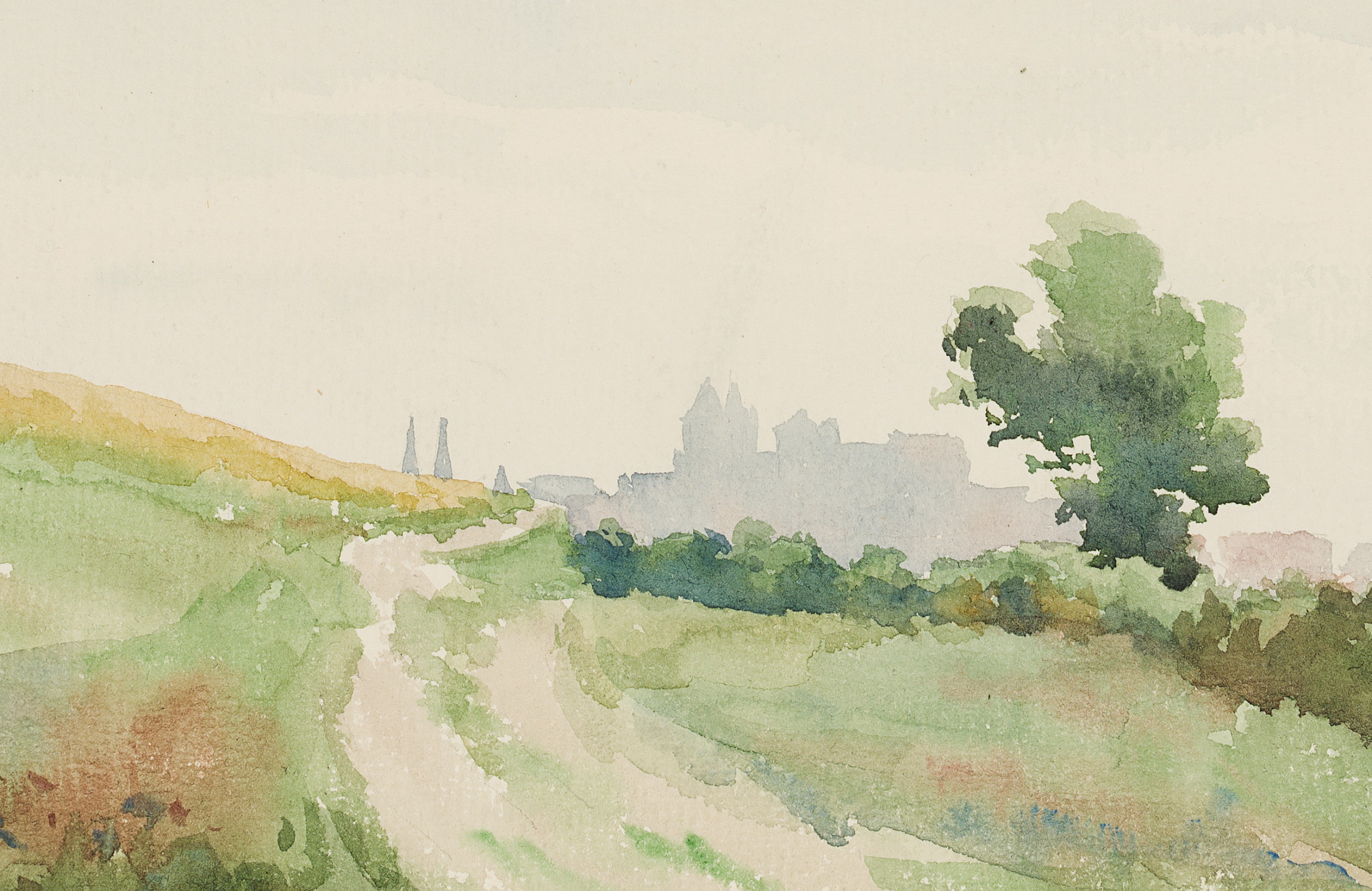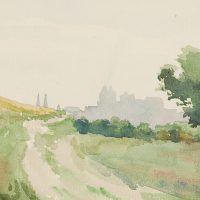 Julius Thaeter jun. (1870 Lindau – 1898 Perugia), Field path with town in the distance, possibly Bregenz(?), , Watercolor