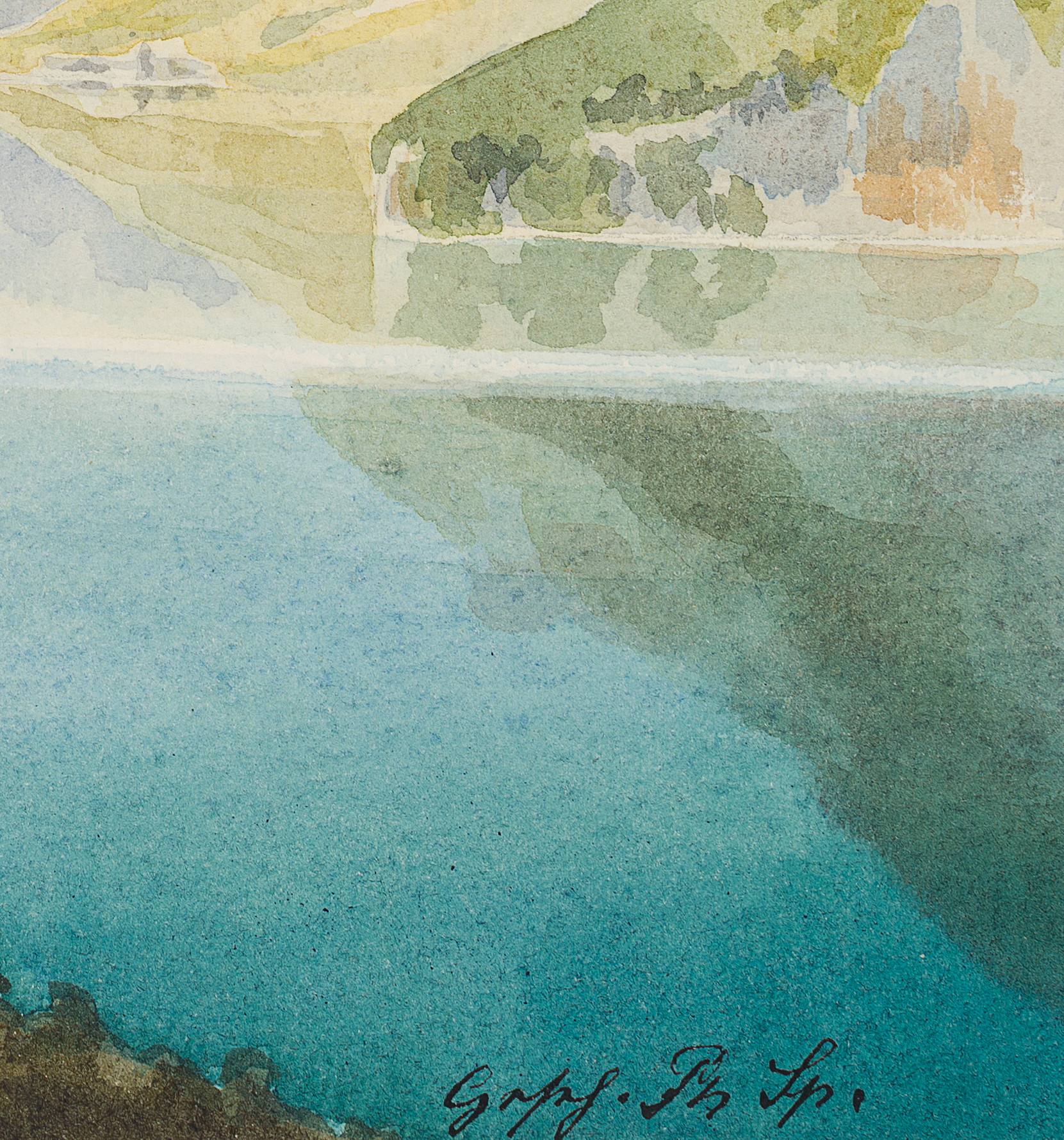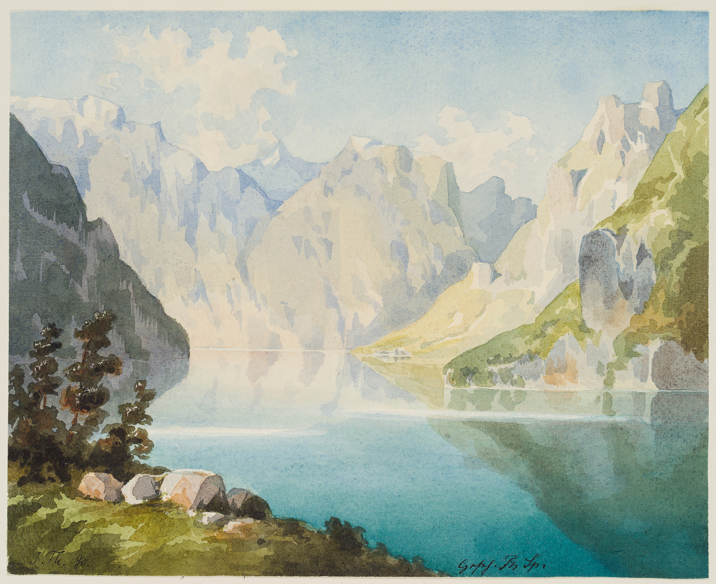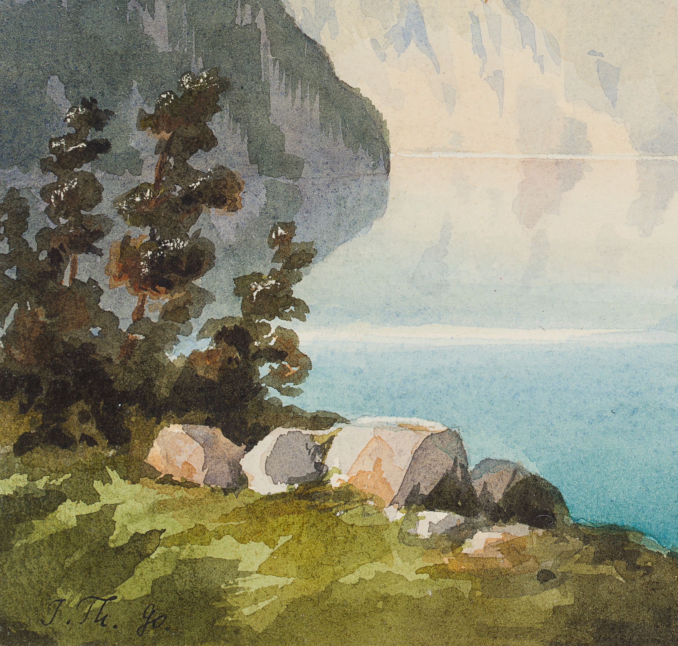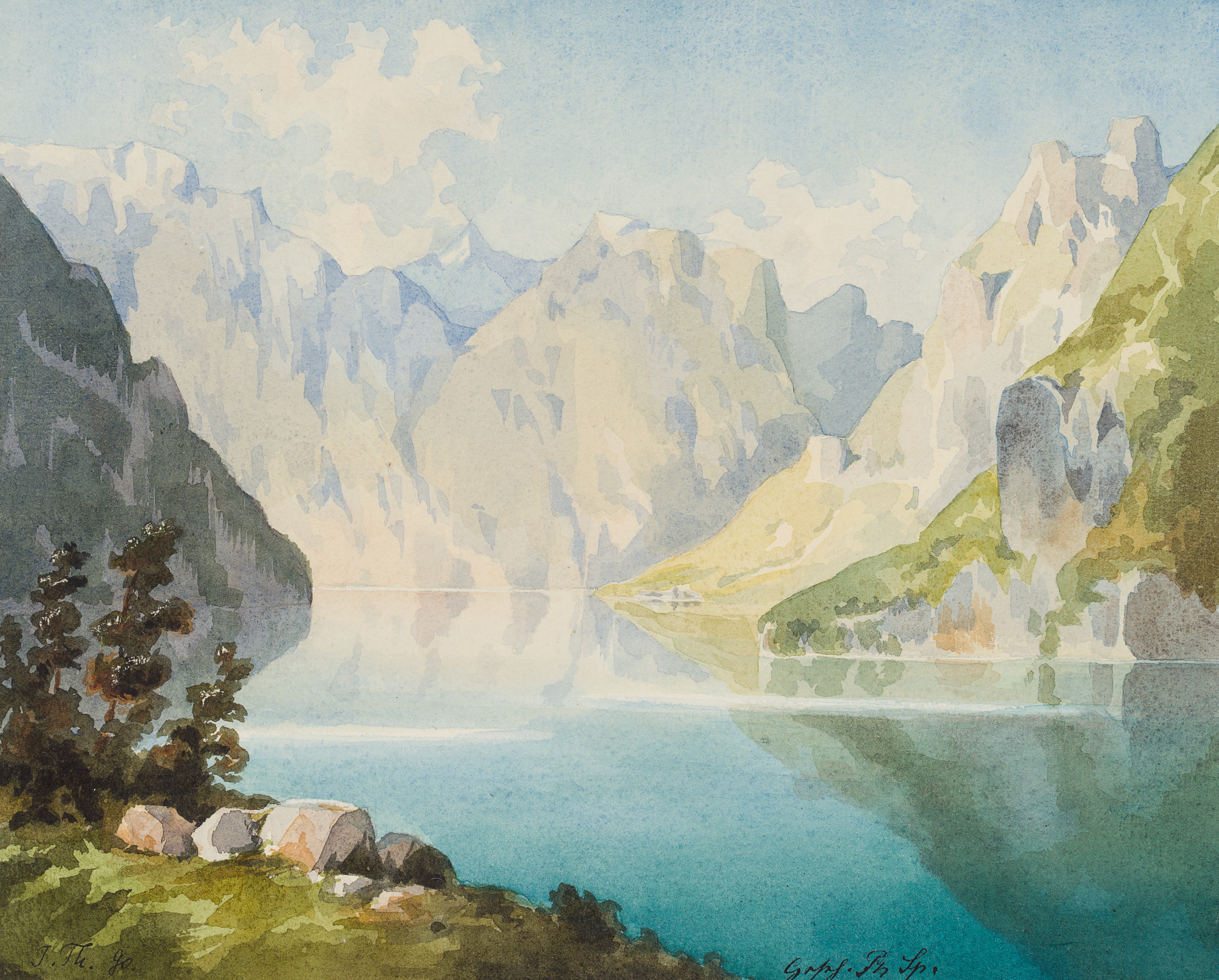 Julius Thaeter jun. (1870 Lindau – 1898 Perugia), Mirror-smooth alpine lake with crystal-clear water, 1890, Watercolor