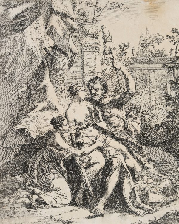Johann Heinrich Tischbein sen. (1722 Haina – 1789 Kassel), Hercules bei Omphale, c. 1750, Etching