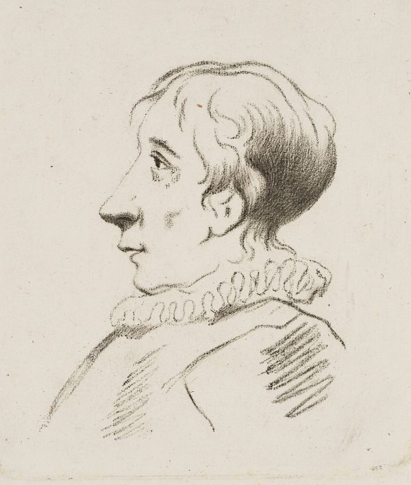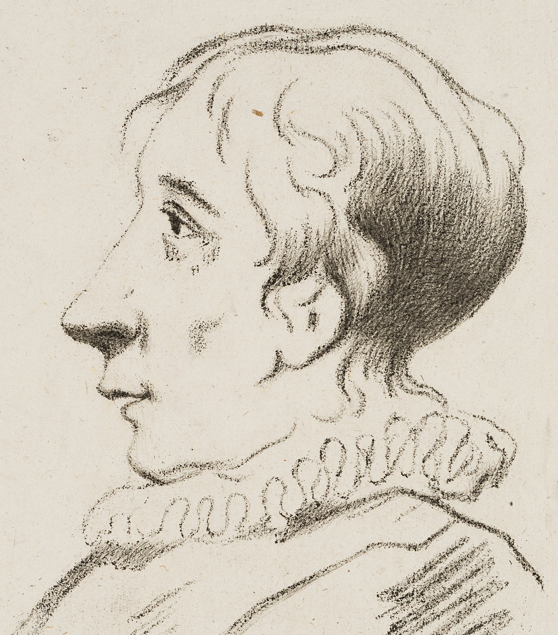 - Description: Minimalist portrait of a young man with a sharply cut profile and a fashionable ruff. A modern-looking portrait with progressive features for its time.