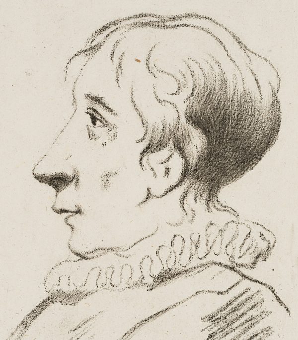 - Beschreibung: Minimalistisches Porträt eines jungen Mannes mit scharf geschnittenem Profil und einer modischen Halskrause. Ein modern wirkendes Porträt mit fortschrittlichen Zügen für seine Zeit.