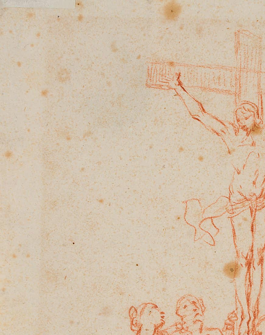 Jonas Umbach (1624 Augsburg – 1693 ebd.) Nachfolge, Beweinung Christi am Kreuz, um 1700, Rötel