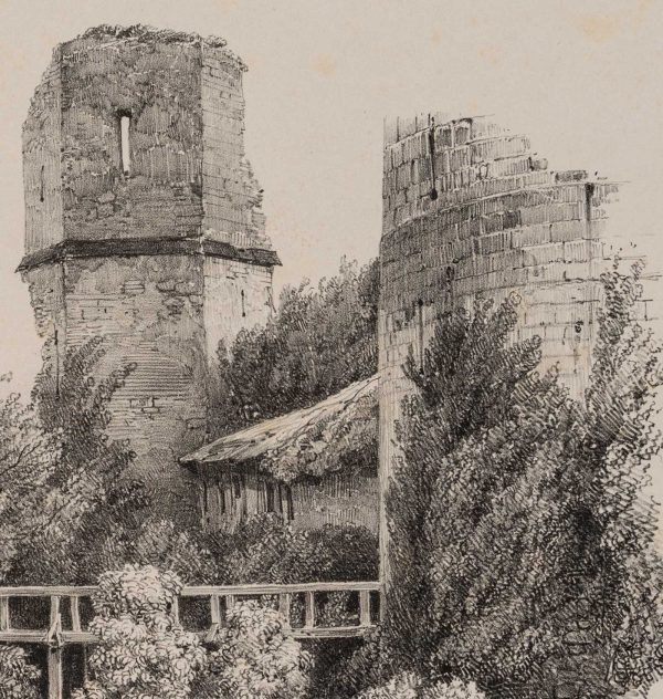 Jules Louis Frédéric Villeneuve (1796 Paris – 1842 ibid.), “Croquis d’apres nature”, View of a castle ruin, 1833, Lithography
