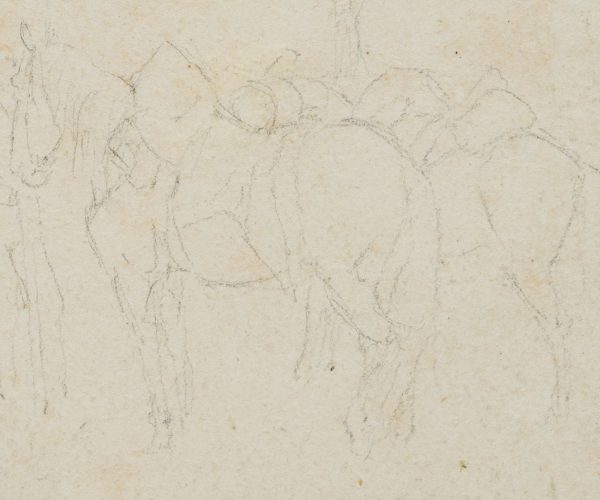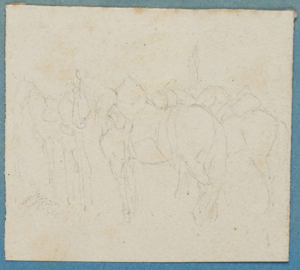 Johann Michael Voltz (1784 Nördlingen – 1858 München), Pferdestudien, Gesattelte Pferde, 19. Jahrhundert, Bleistift