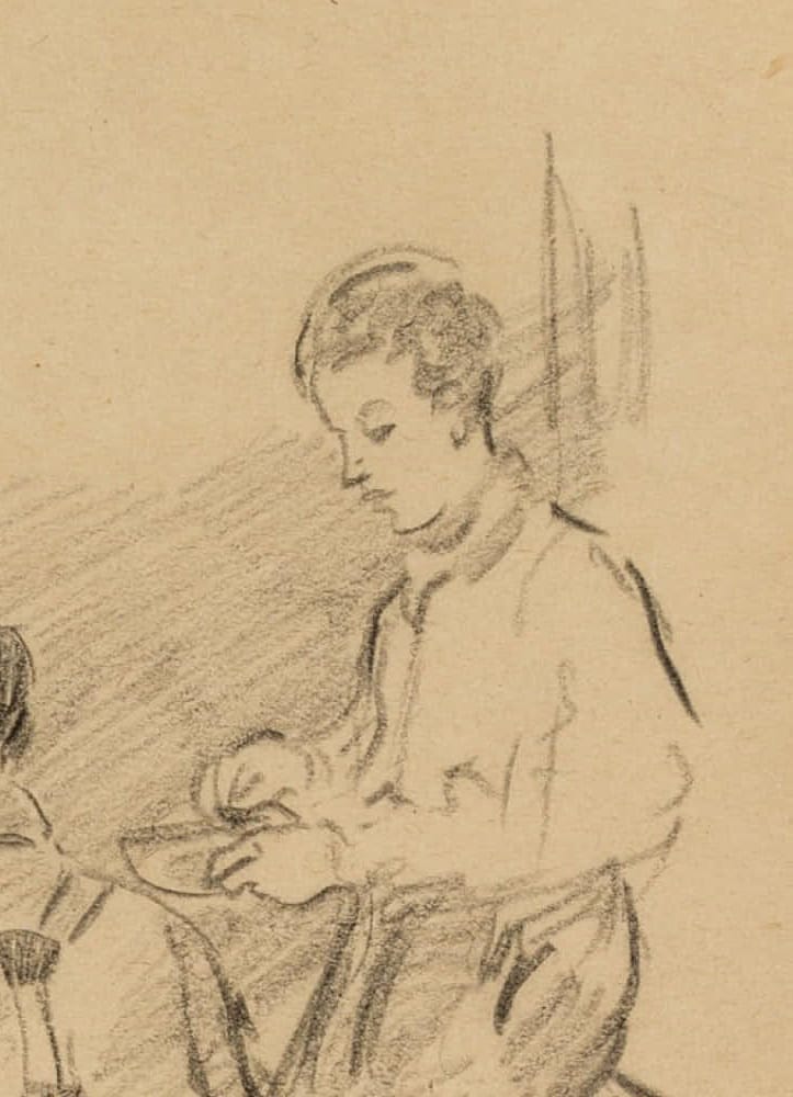 • Description: Beautiful, intimate scene. Inscribed on verso “Jan Wiegman”.