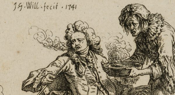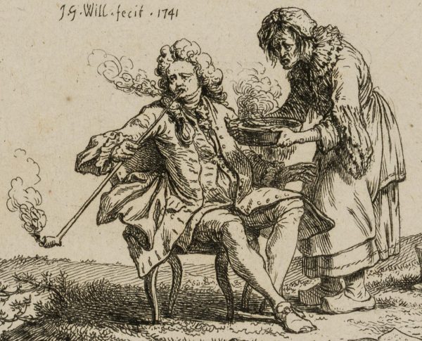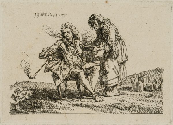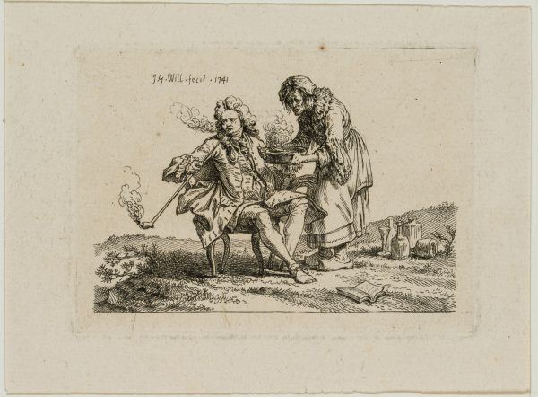 Johann Georg Wille (1715 Königsberg, Gießen – 1808 Paris), Satirische Darstellung eines leidenden Rauchers, 1741, Kupferstich