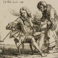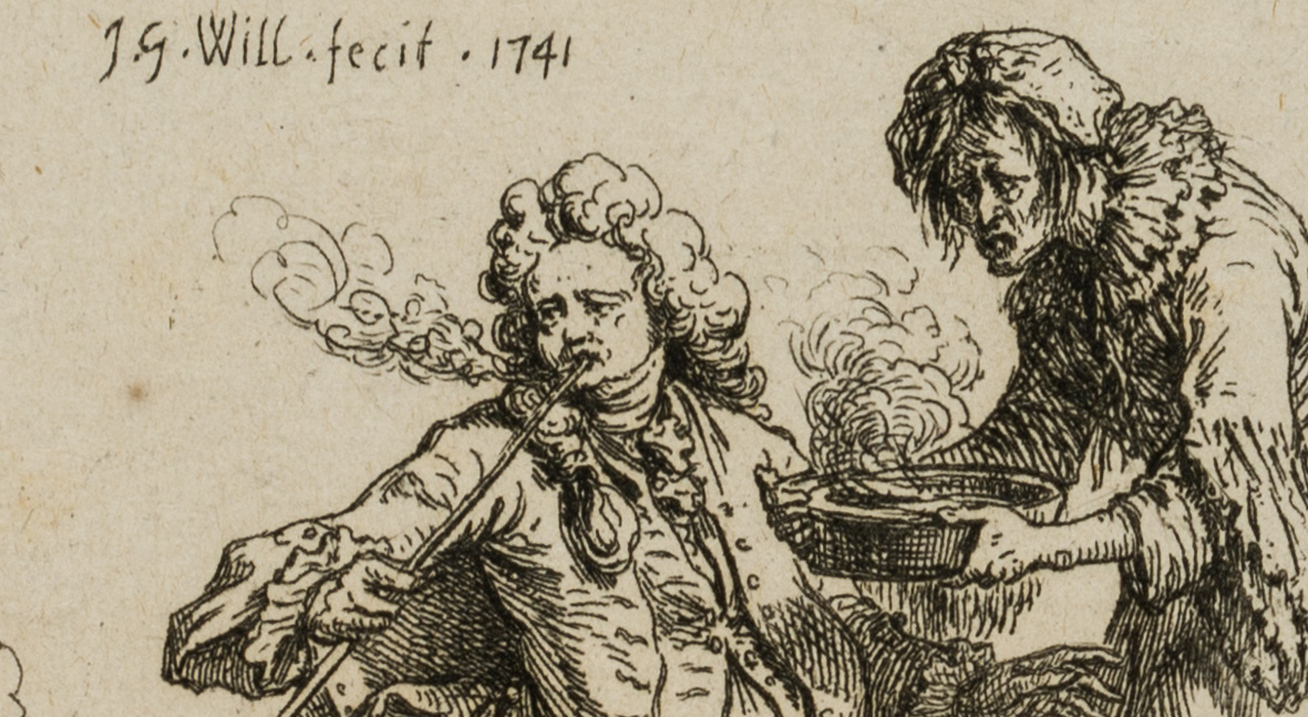 J. WILLE (1715-1808), Satirische Darstellung eines Rauchers, 1741, Klassizismu