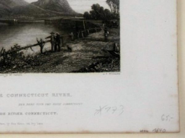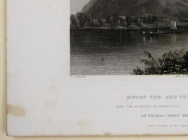- Description: Steel engraving by J. T. Willmore, inscribed lower left: “T. Creswick”, centre: “after a sketch by Mr. Barflett”, right: “J. T. Willmore”, below centre: “Mount Tom and the Connecticut River. Mont Tom et Rivire de Connecticut. The Mount Tour and River Connecticut. De Thomas -Mountain ende Rivier Connecticut. London, Published for the Proprietors, by Geo. Virtue, 26, Ivy Lane”. Atmospheric river landscape with some sailing ships and mountainous scenery. J. T. Willmore ( Bristnald’s End (Handsworth, West Midlands) / Erdington 1800 – London 1863) was an English copper and steel engraver. He worked in London and Birmingham, among other places.