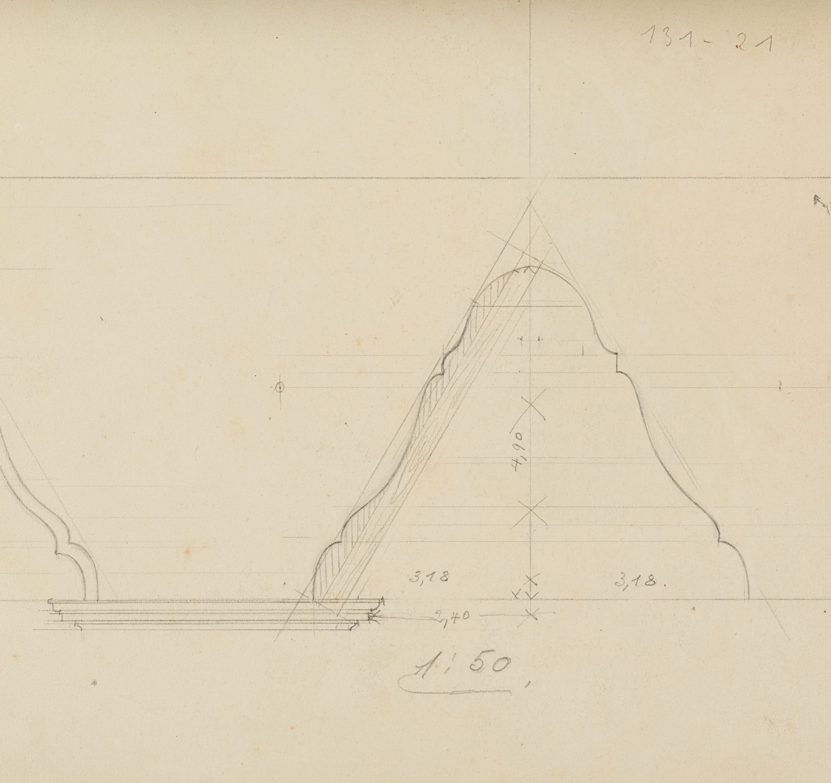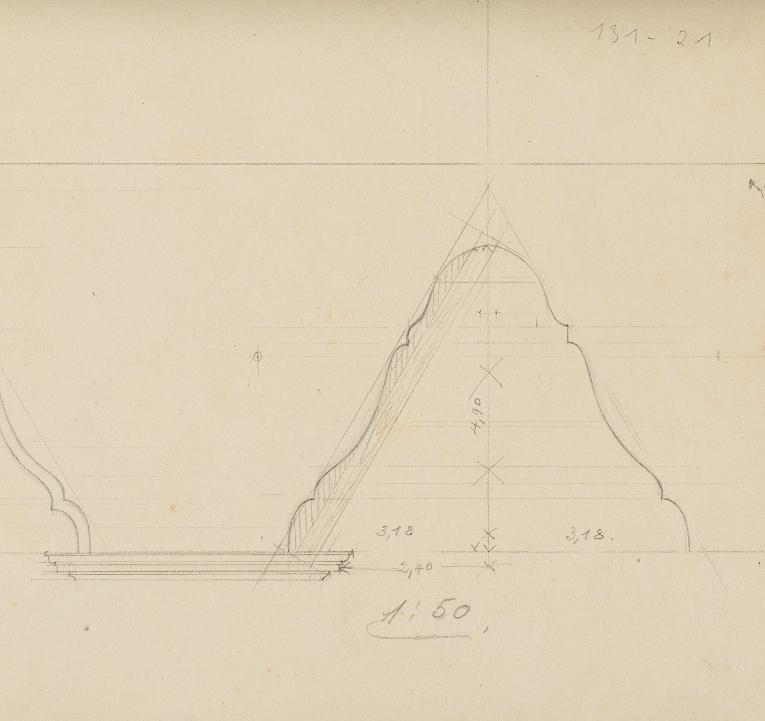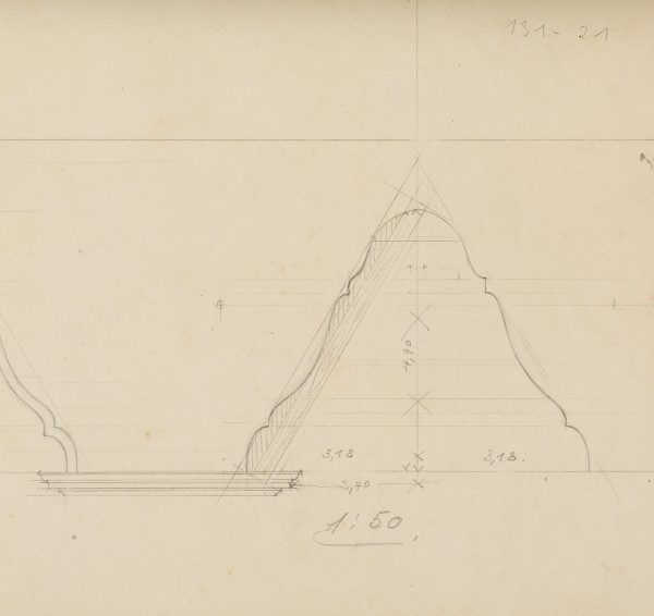 - Verso: Architekturstudie mit Maßangaben, in Bleistift