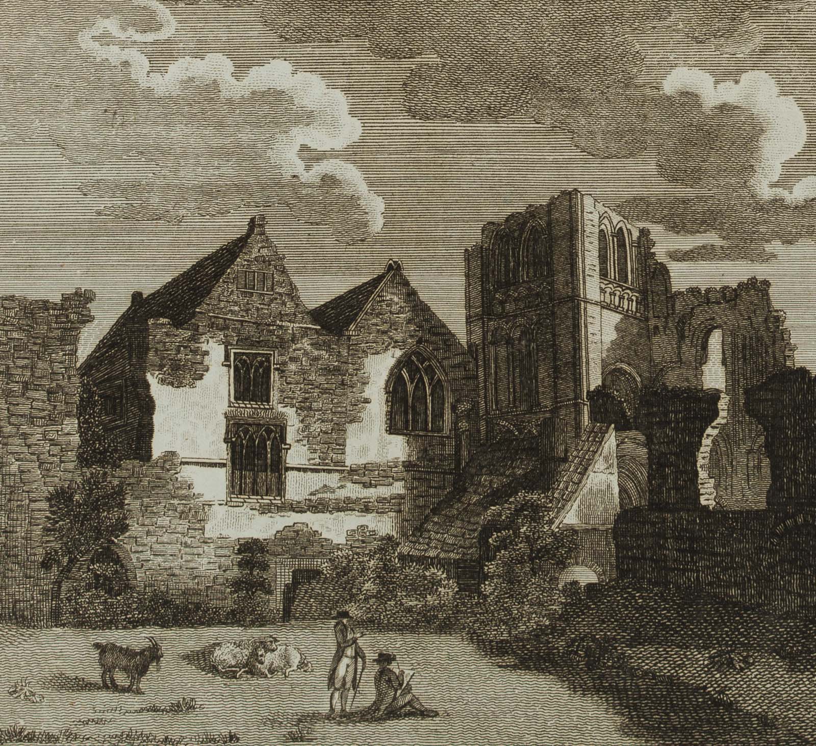 Aus: Boswell, Henry: “Pituresques Views of the Antiquities of England and Wales” (1786). Jeweils unterhalb der Darstellung innerhalb der Druckplatte signiert “J. Wooding sculp.t” und betitelt. Darunter bezeichnet “Published according to Act of Parliament by Alexr. Hogg, at the King’s Arms, No. 16 Paternoster Row.”. | Wasserzeichen: Lilie