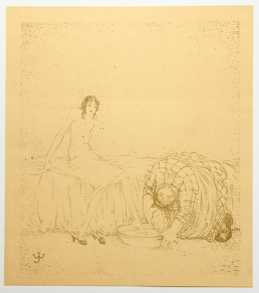 Johann Würstl (born 1888 Munich), Grumpy maid washes lady’s feet, , Lithography