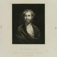 - Beschreibung: bezeichnet “Engraved by J. Jenkins”, betitelt darunter “The Banished Lord. From the Original Picture by Sir J. Reynolds in the National Gallery, No. 28.”. Der Stahlstich zeigt ein Porträts des “verbannten Lords”, nach einem Gemälde von Sir Joshua Reynolds. Dieser war neben William Hogarth und Thomas Gainsborough der bekannteste und durch sein künstlerisches und kunsttheoretisches Wirken der einflussreichste englische Maler des 18. Jahrhunderts.