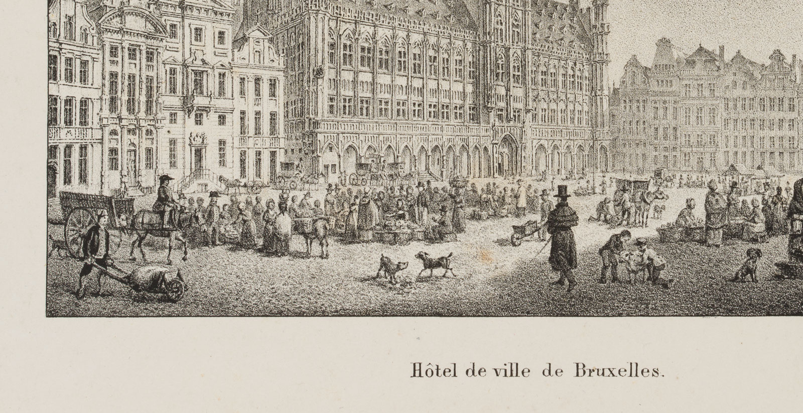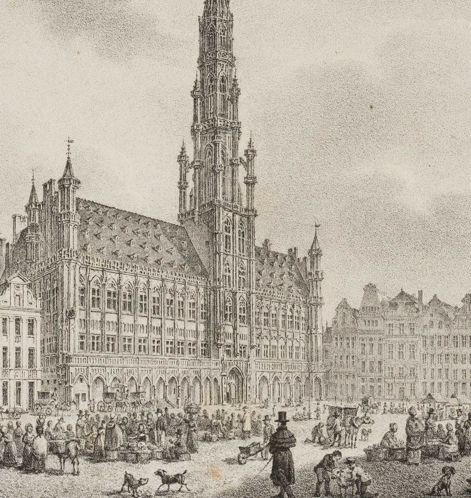Jobard (19th century), Hôtel de Ville, Stadthuis in Brussels, Grand Place, Belgium, 19th century, Lithography