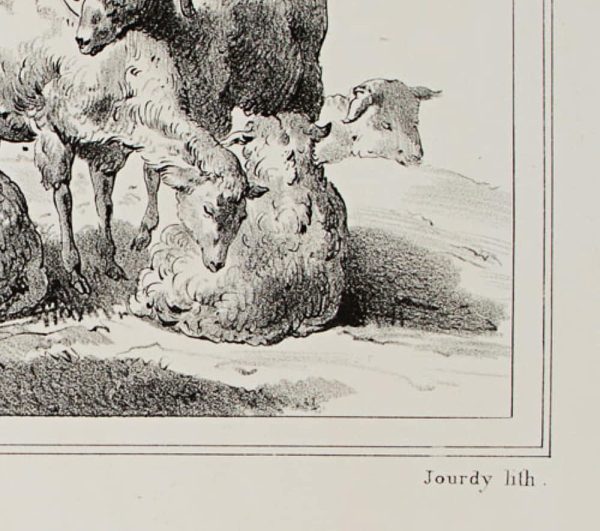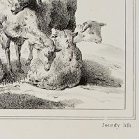 Paul Jourdy (1805 Dijon – 1856 Paris) after Jacob van der Does (1623 – 1673 ), Sheep group, c. 1850, Lithography