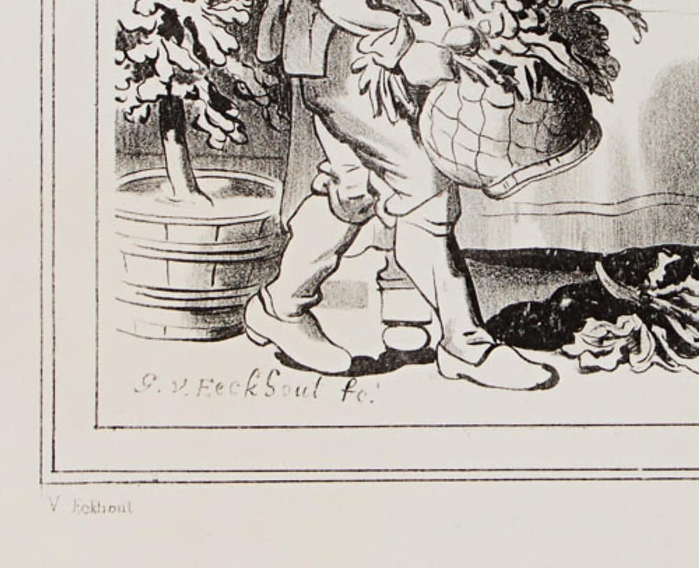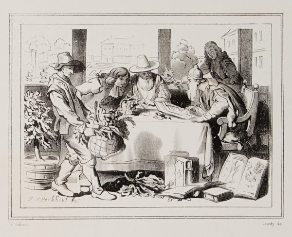 - Description: “The Botanist”. Lithograph after a work by Van Den Eckhout {1621-1673). He was a painter of the Dutch School. From the series: Pictures of the Flemish, Dutch and German School (ECOLE FLAMANDE, HOLLANDAISE ET ALLEMANDE). Signed in the motif: G. v. Eckhout fet. Inscribed: Van Eckhout. Jourdy del.