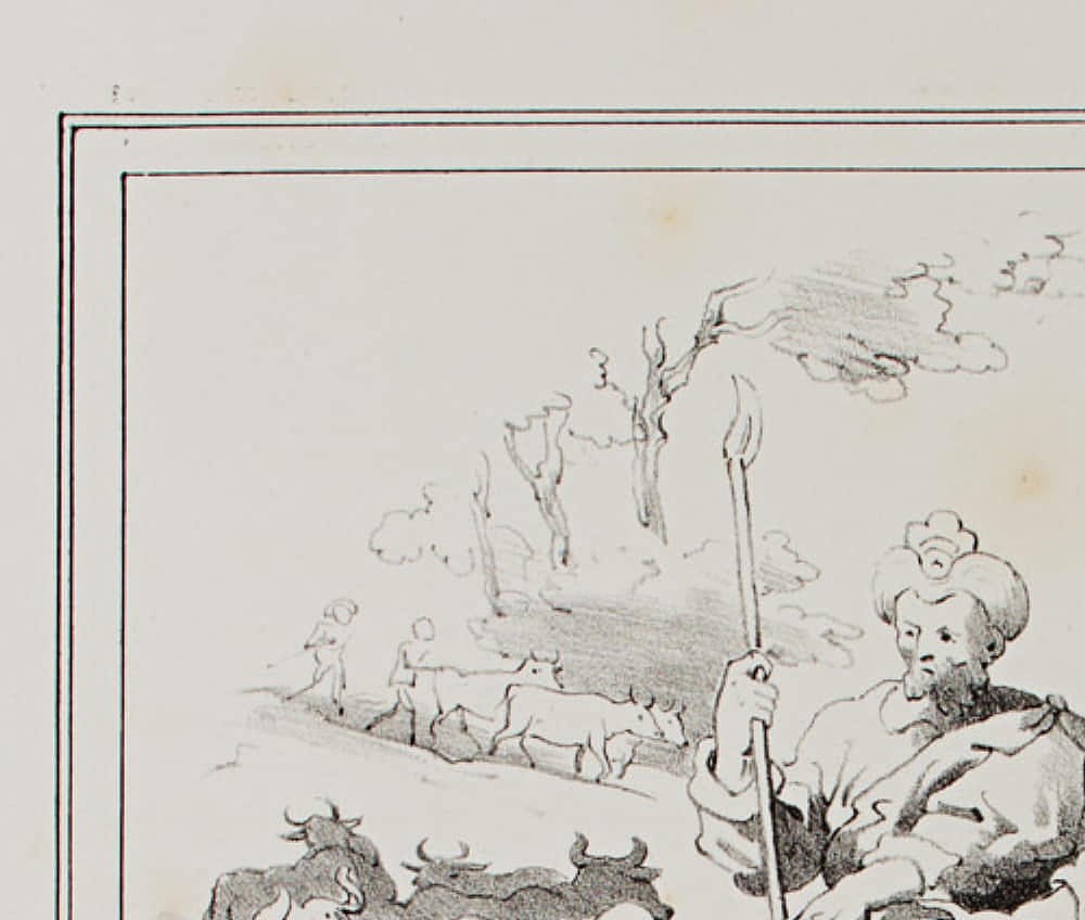 Paul Jourdy (1805 Dijon – 1856 Paris) after Marten de Vos (1532 Antwerp – 1603 ibid.), Shepherds in the countryside, c. 1850, Lithography