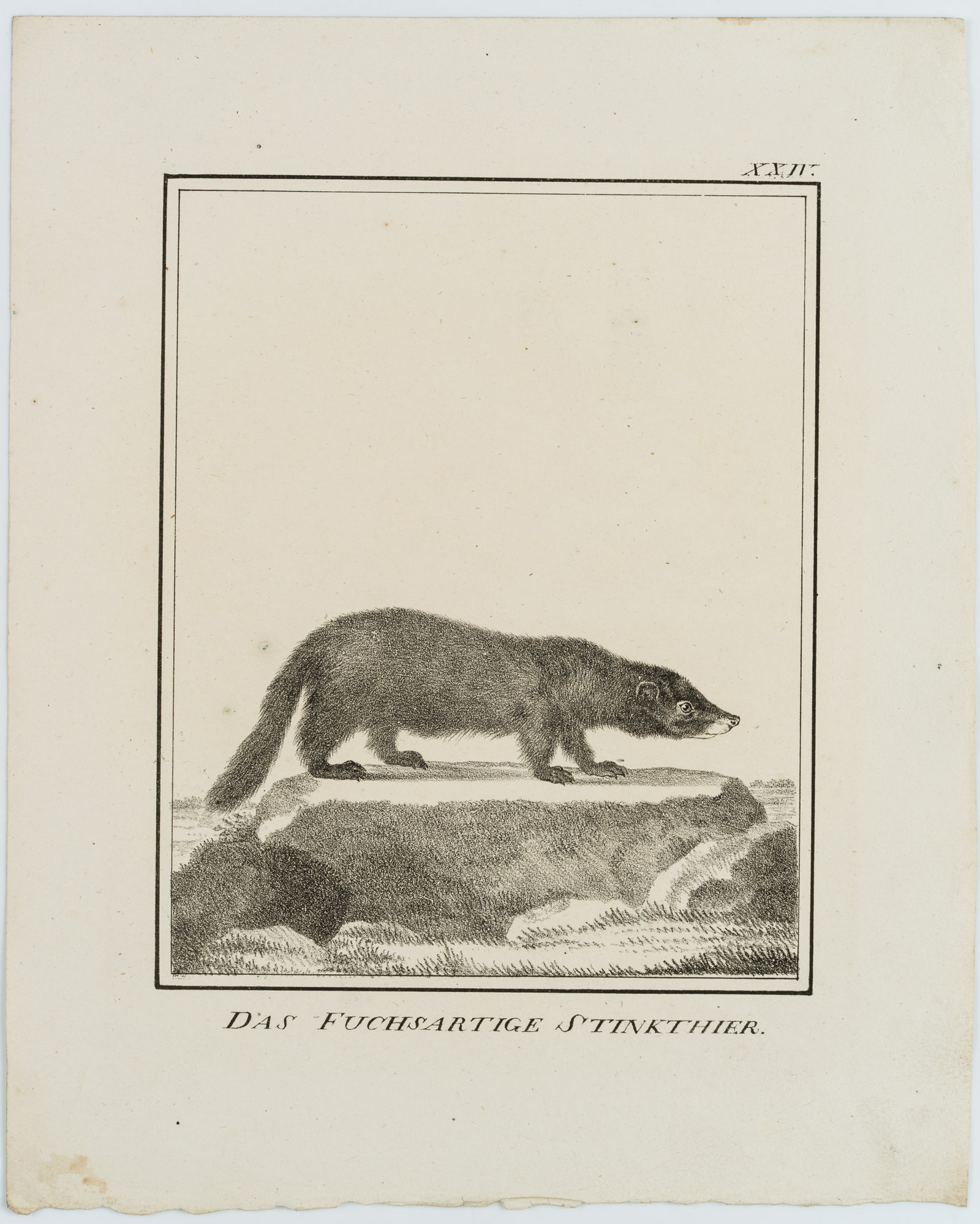 Jungerman (19. Jahrhundert), “Das fuchsartige Stinkthier”, Naturhistorische Abbildung, 19. Jahrhundert, Lithographie