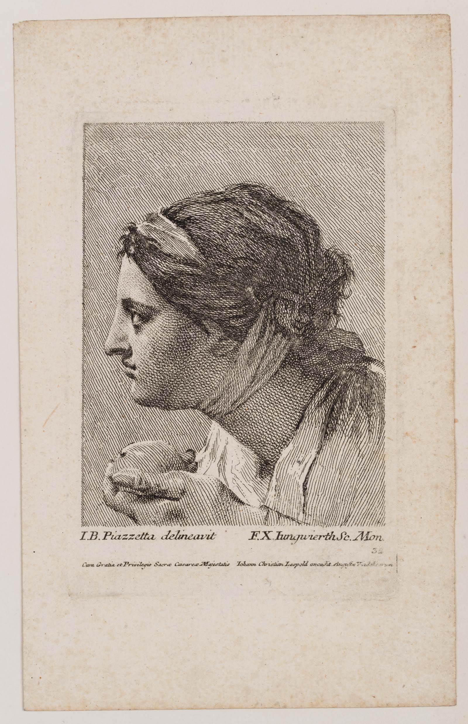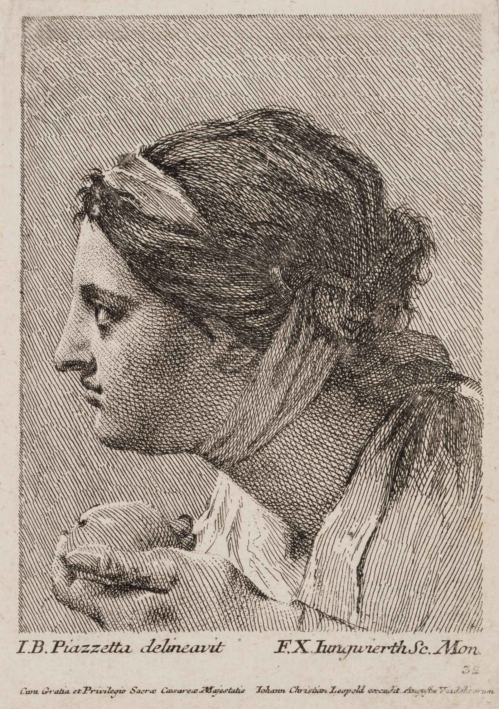 Franz Xaver Andreas Jungwierth (1720 Munich – 1790 ibid.) after Giovanni Battista Piazzetta (around 1682 Venice – 1754 ibid.), Head Study of a Lady with Lemon, 18th century, Etching