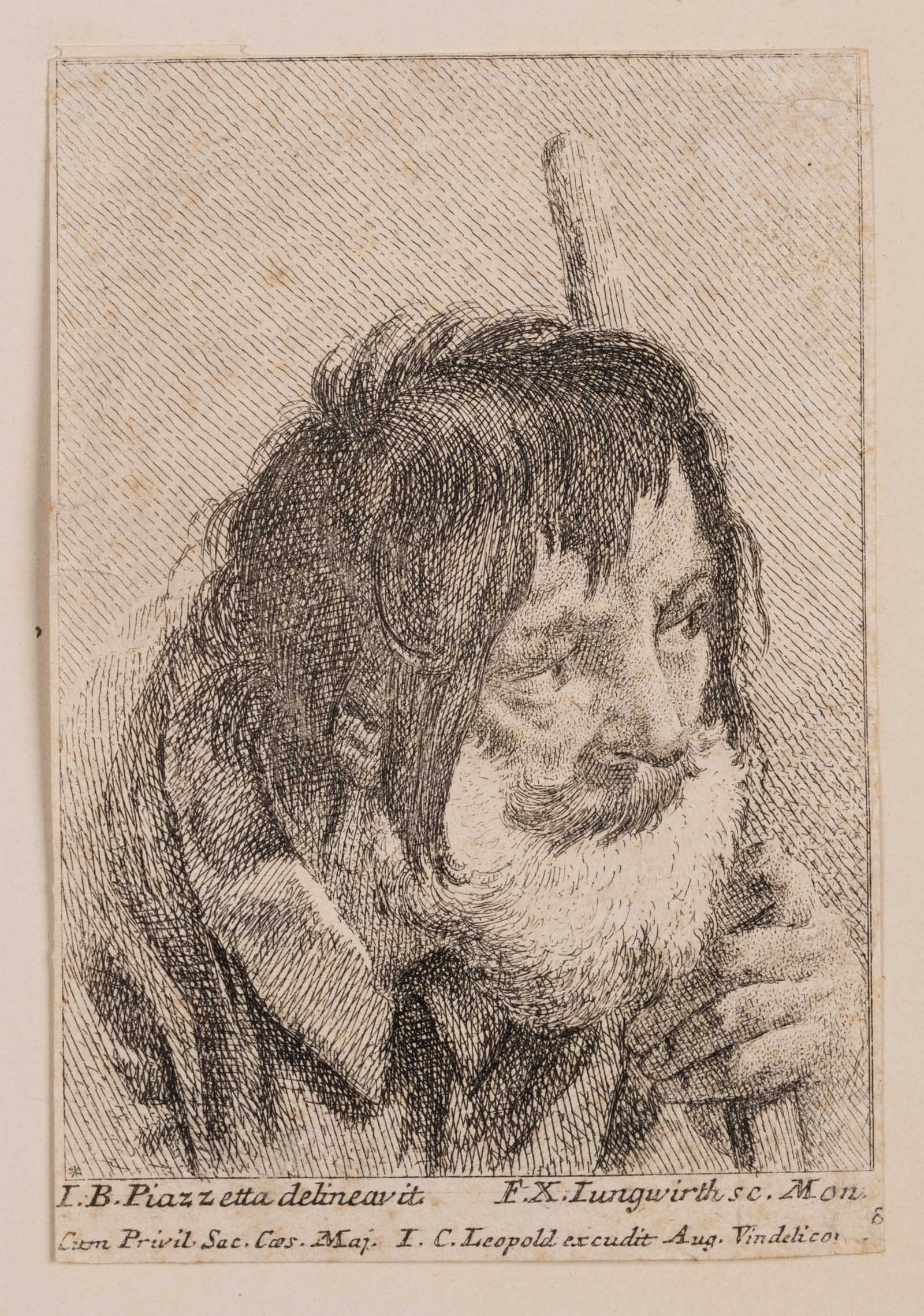 Franz Xaver Andreas Jungwierth (1720 Munich – 1790 ibid.) after Giovanni Battista Piazzetta (around 1682 Venice – 1754 ibid.), Head study of an old man with a stick Portrait of a man, 18th century, Etching