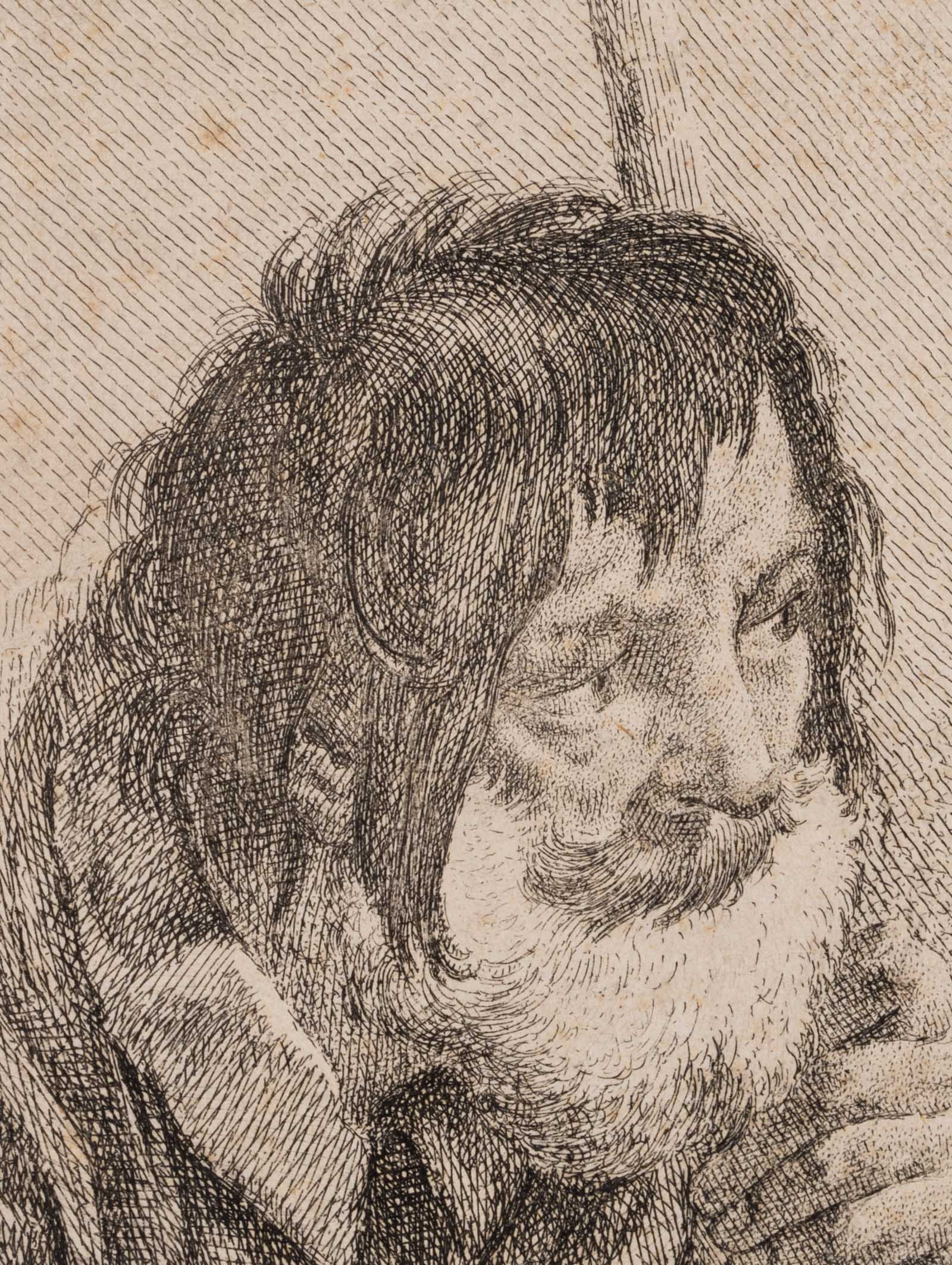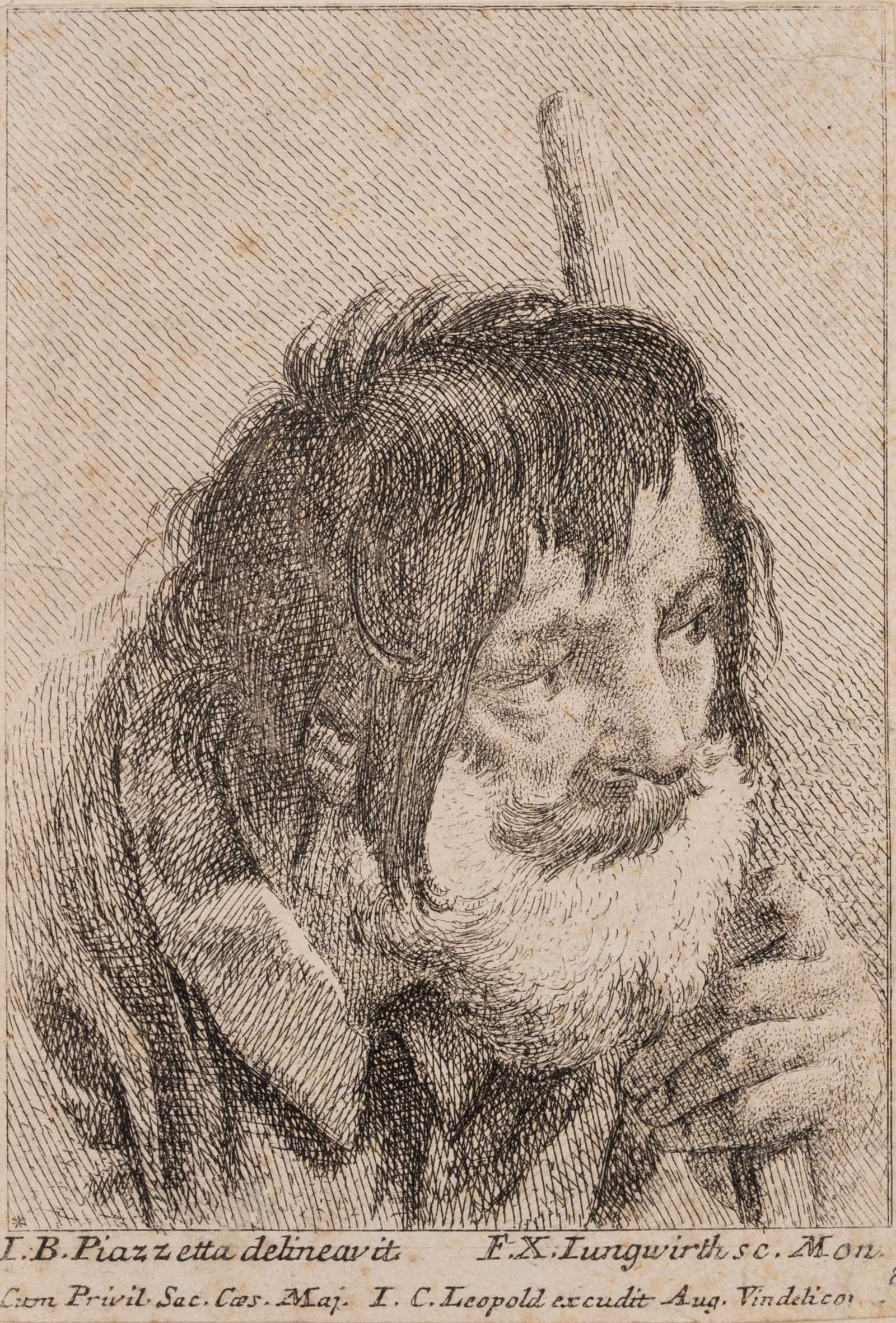 Franz Xaver Andreas Jungwierth (1720 München – 1790 ebd.) nach Giovanni Battista Piazzetta (um 1682 Venedig – 1754 ebd.), Kopfstudie eines Alten mit Stock. Portrait eines Mannes, 18. Jahrhundert, Radierung