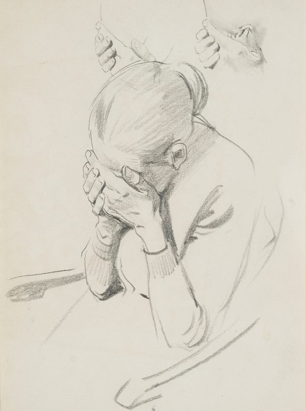 Konrad Böse (1852 Neustadt (Magdeburg) – 1938 Potsdam), Desperate woman, c. 1880, Pencil