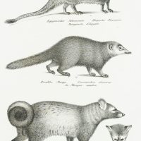 Karl Joseph Brodtmann (1787 Überlingen – 1862 Basel), Ichneumon, Dark Cusimanse and Musang, 19th century, Lithography
