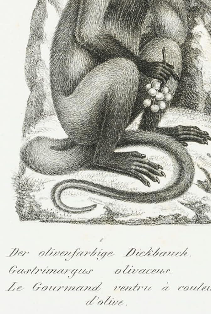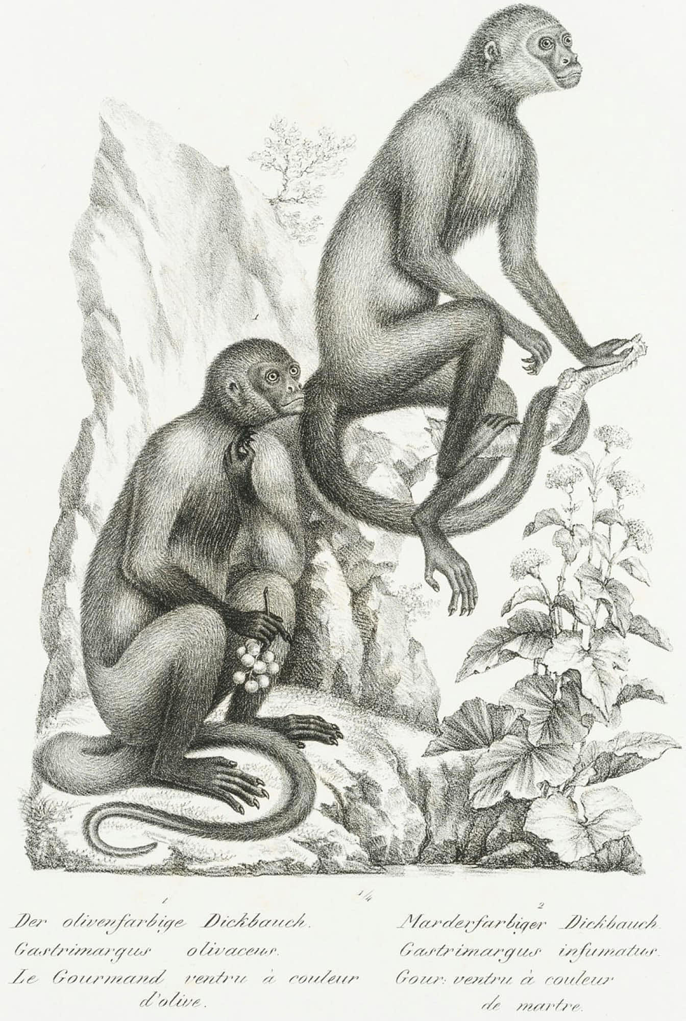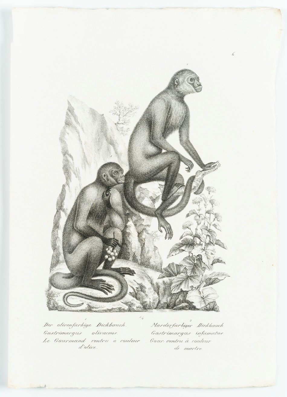 Karl Joseph Brodtmann (1787 Überlingen – 1862 Basel), Karl Joseph BRODTMANN, Dickbauch-Affen, 19. Jahrhundert, Lithographie