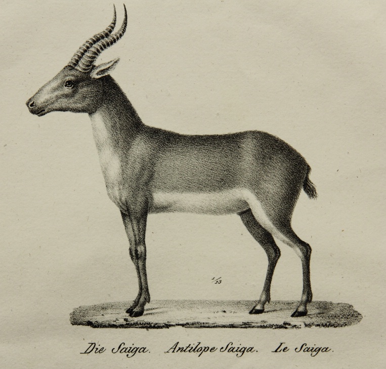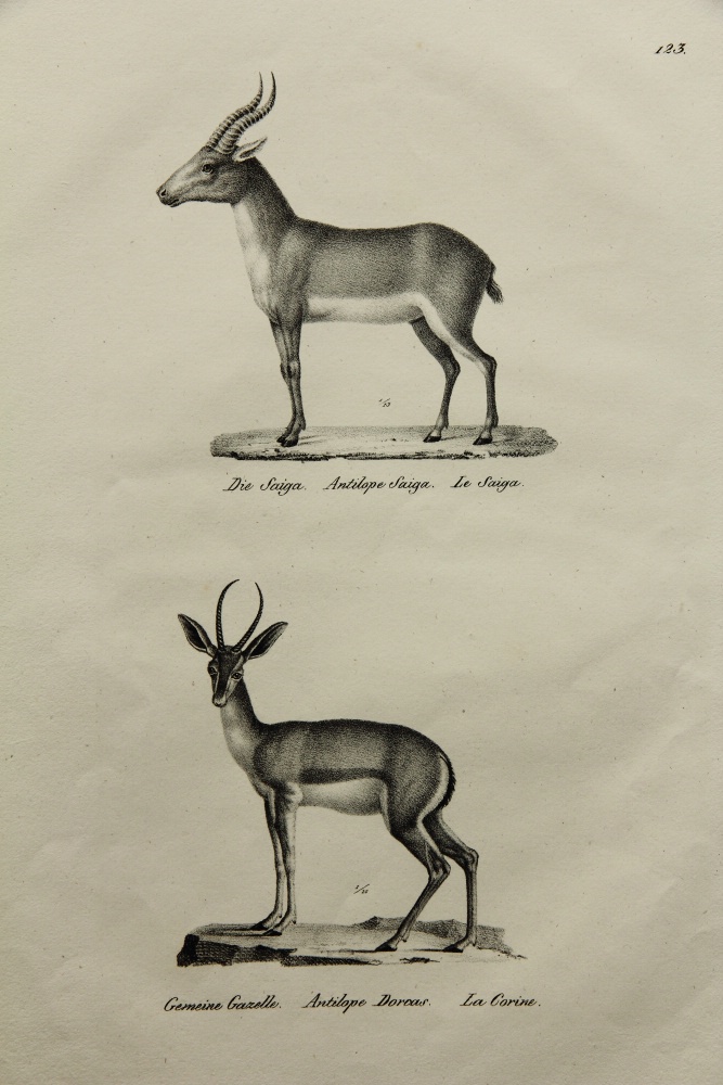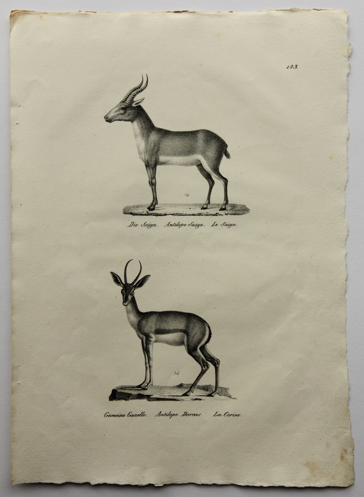 Karl Joseph Brodtmann (1787 Überlingen – 1862 Basel), Saiga antelope and a common gazelle, 19th century, Lithography
