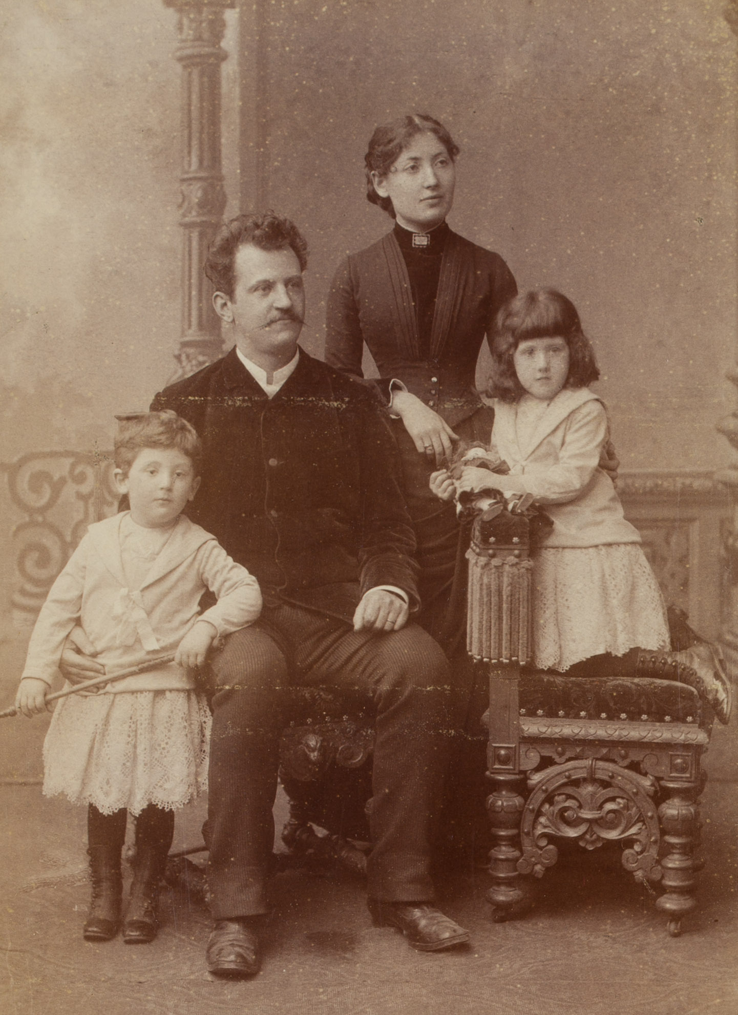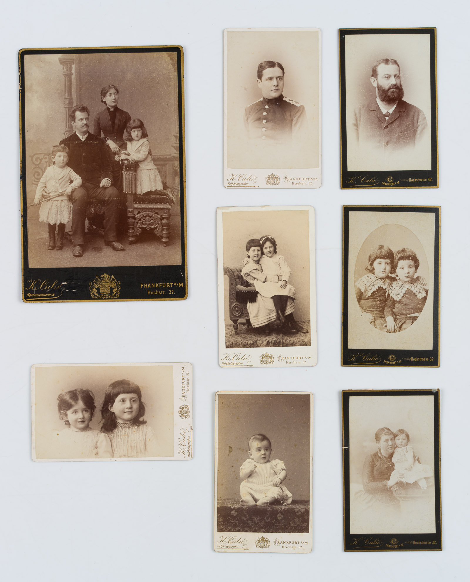 Katharina Culie (19th century), 8 portraits in different constellations. Family, sibling, child and gentleman portrait as Carte de Visite and Carte Cabinet, 1880, Original-Photograph