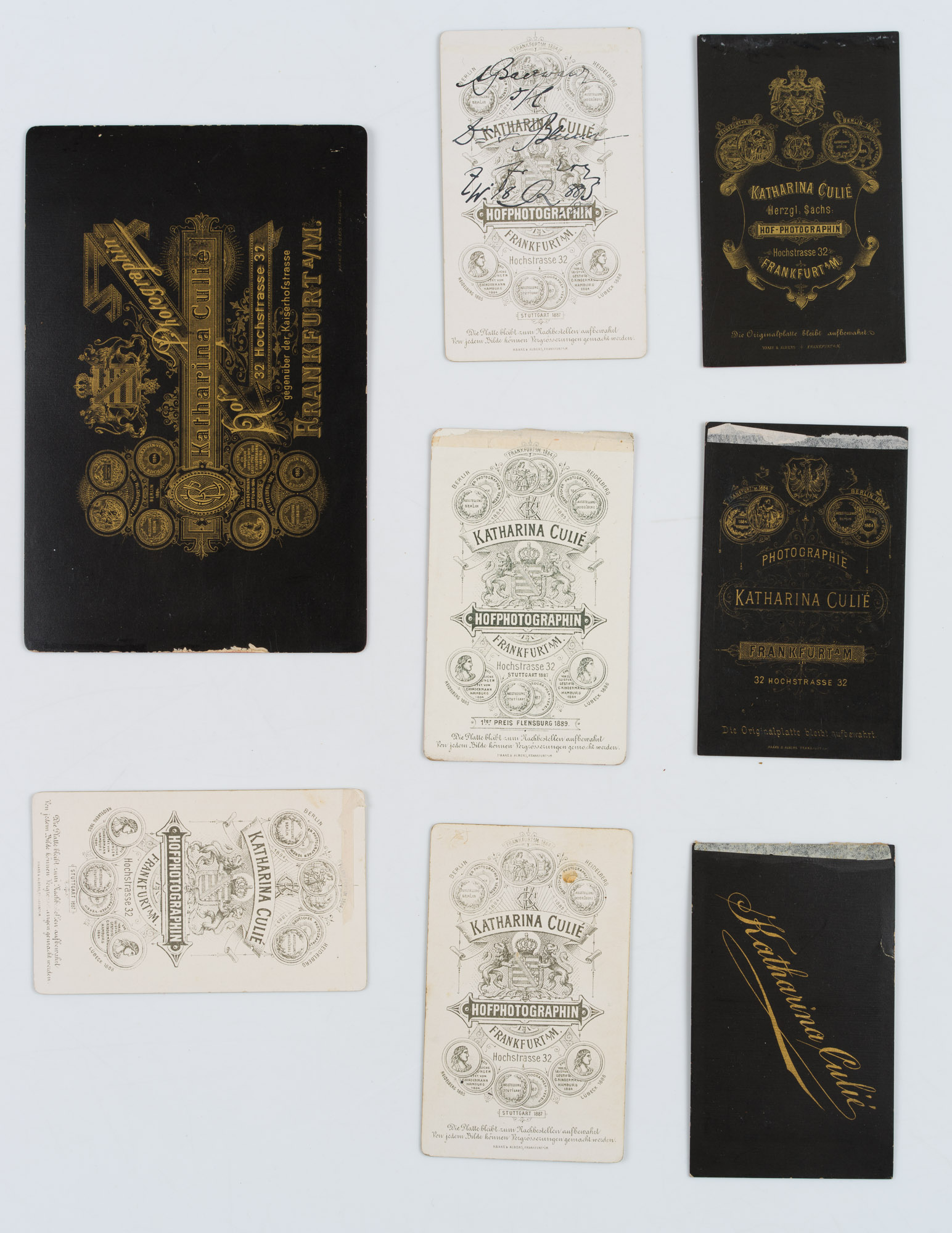 - Beschreibung: Von der Fotografin Katharina Culie, Hof-Fotografin, Hochstraße 32, Frankfurt. Das Herrenportrait mit jungem Mann in Uniform ist rückseitig handschriftlich beschriftet.