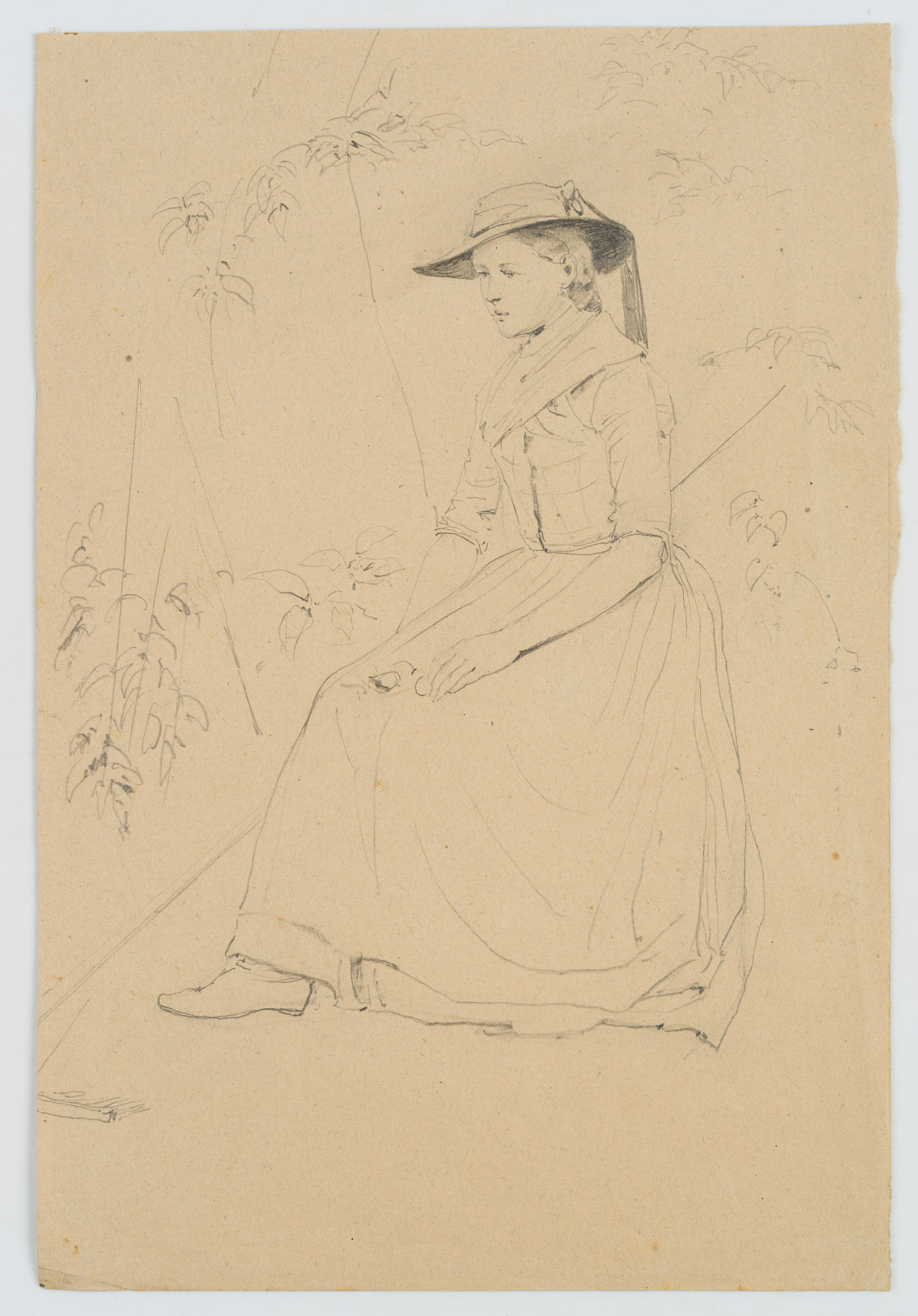 Karl Enderlein (1872 Leipzig – 1954 Dresden), Traditional costume girl, 19th century, Pencil
