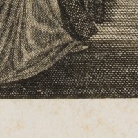 - Zustand: Das Papier ist altersbedingt verfärbt. Das Blatt ist blass stockfleckig. Im unteren rechten Bereich der Darstellung und im Rand mit zwei kleinen Löchern; verso Spuren einer früheren Montage.