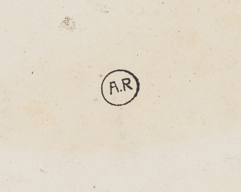 - Stamp: Collector’s stamp, Lugt no.: 4401. Unknown/not identified. Mark: “A. R”. unknown. 18th century