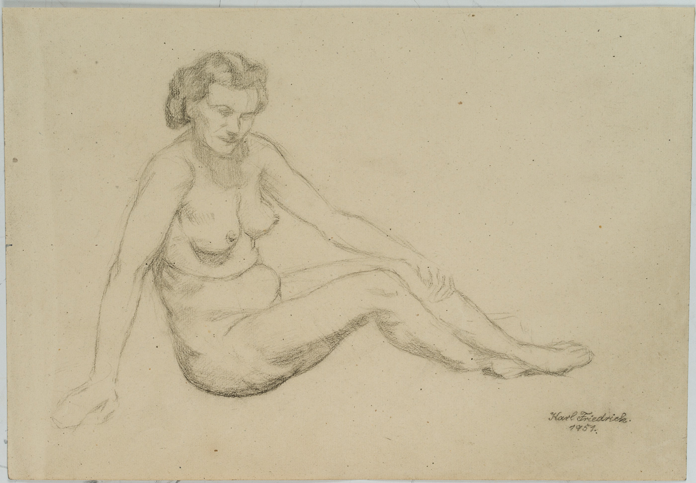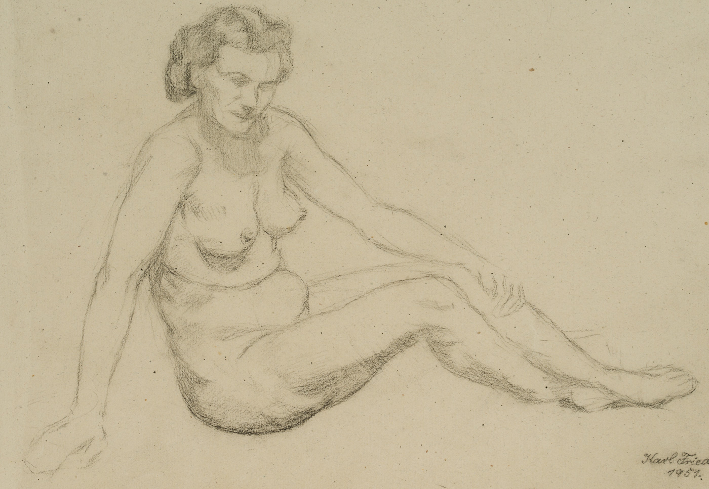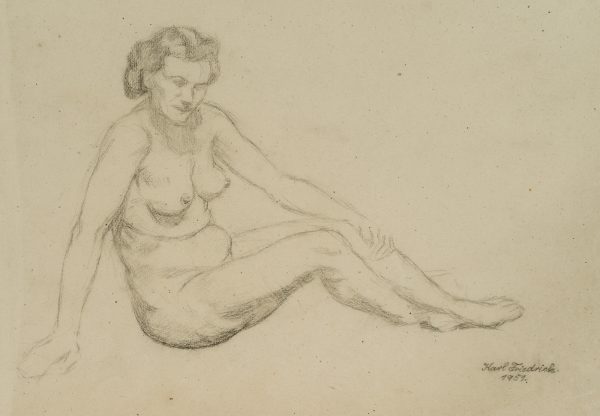 Karl Friedrich (20th century), K FRIEDRICH, Sitting female nude, 1951, 1951, Pencil