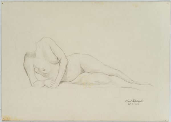 Karl Friedrich (20th century), Lying female nude, 1947, Pencil