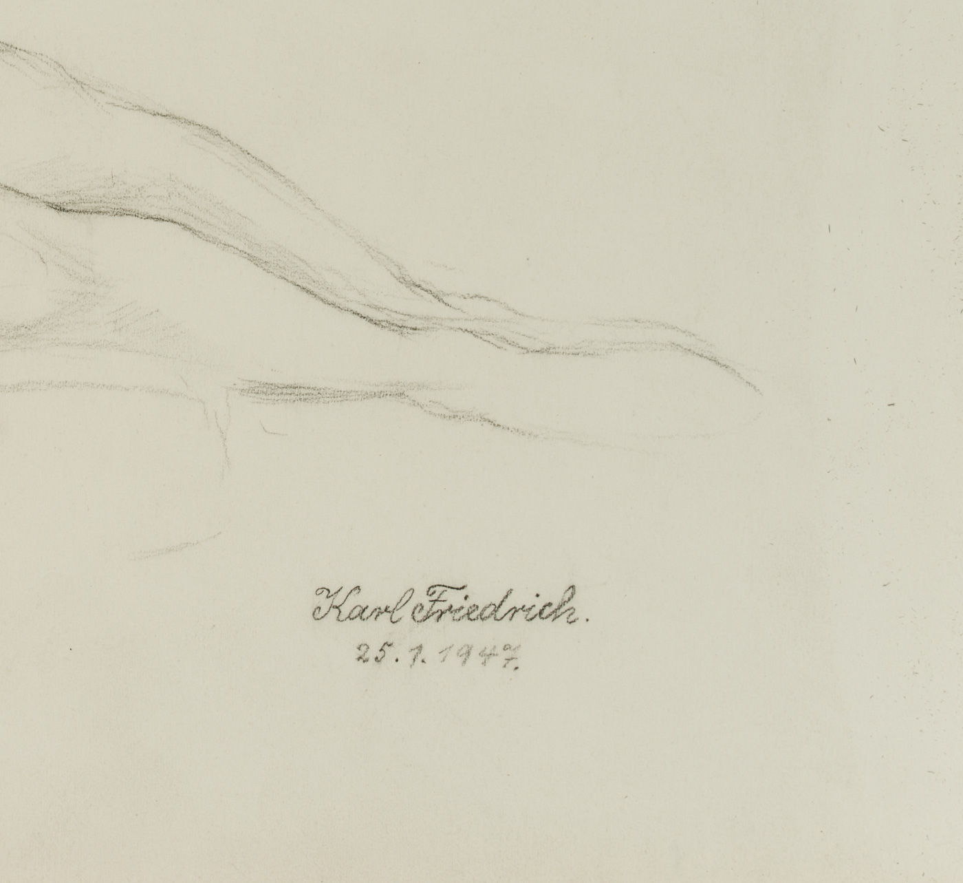 - Bezeichnung: Unten rechts signiert: “Karl Friedrich”. Unten rechts datiert: “25.1.1947”.