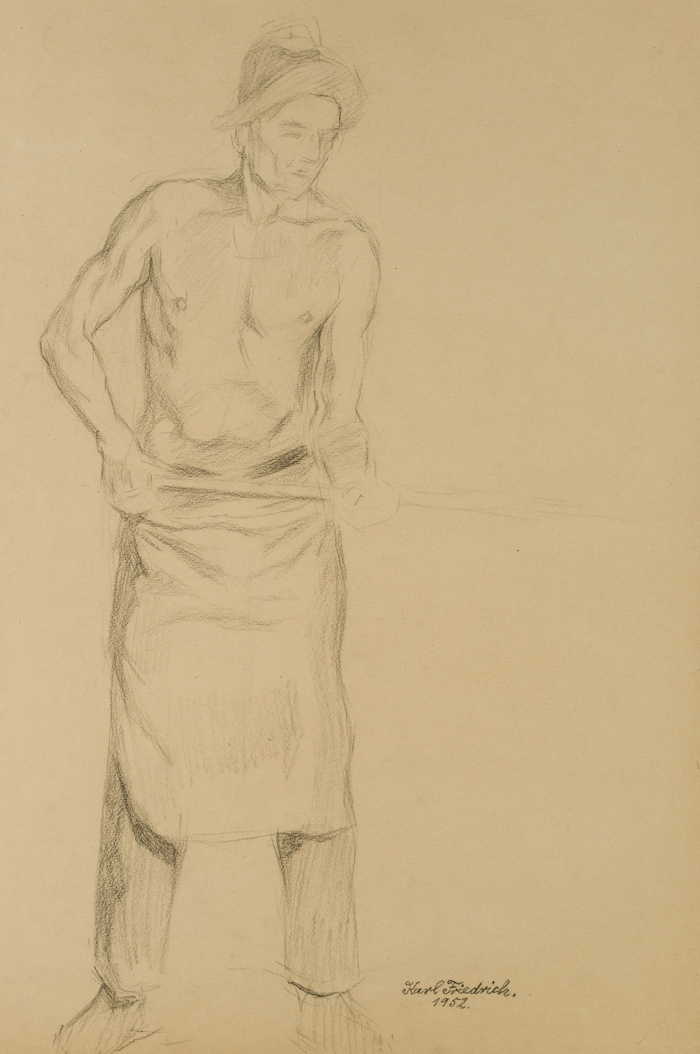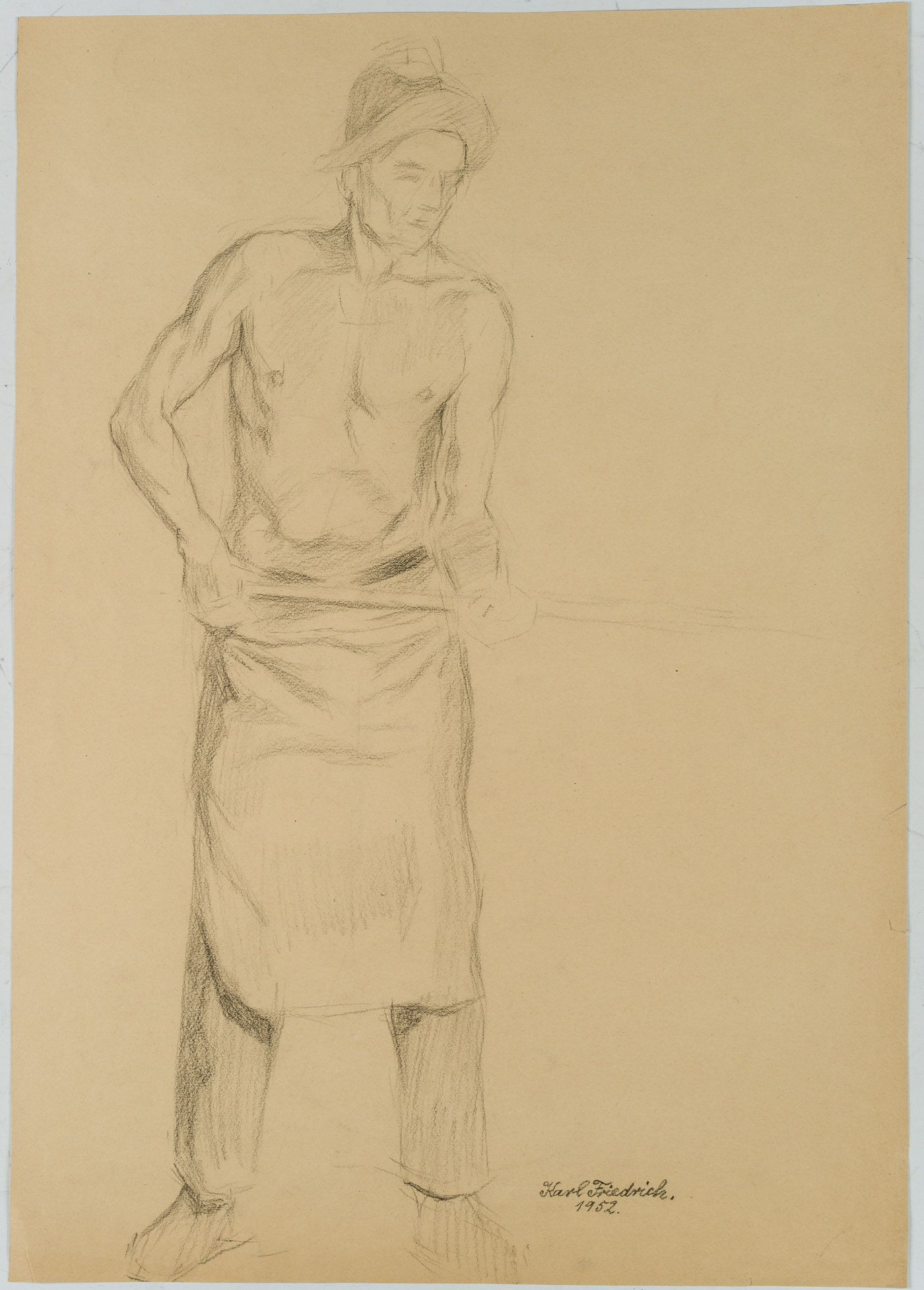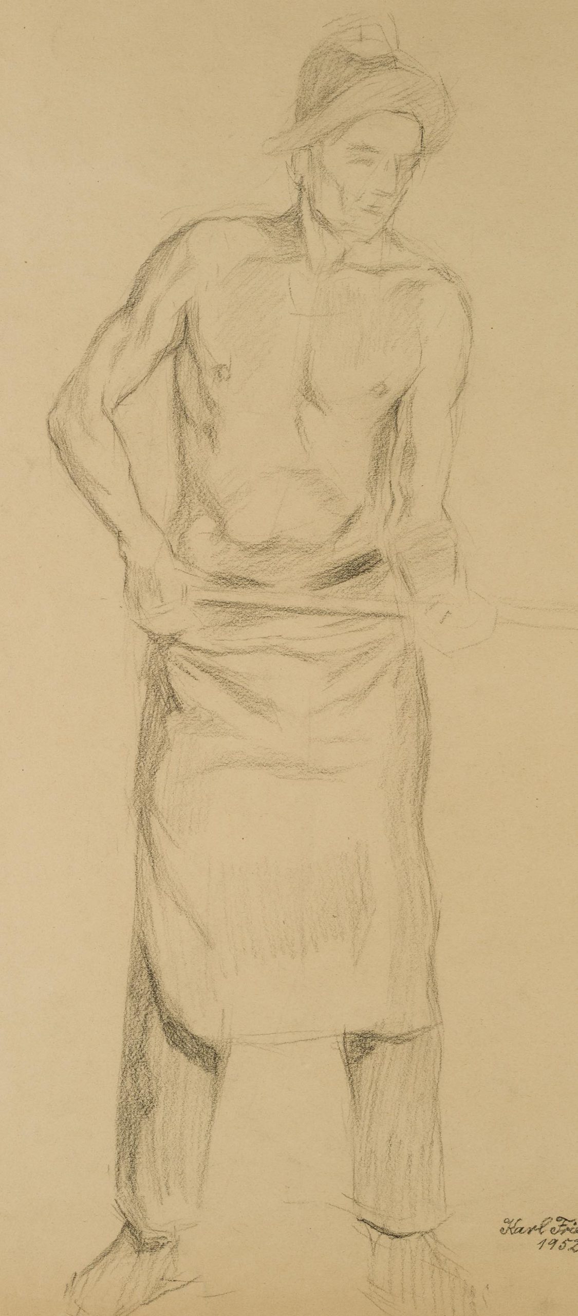 Karl Friedrich (20th century), Portrait study of a worker, 1952, Pencil