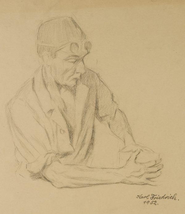 Karl Friedrich (20. Jahrhundert), Porträtstudie eines Handwerkers, 1952, Bleistift
