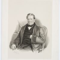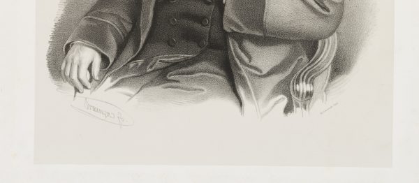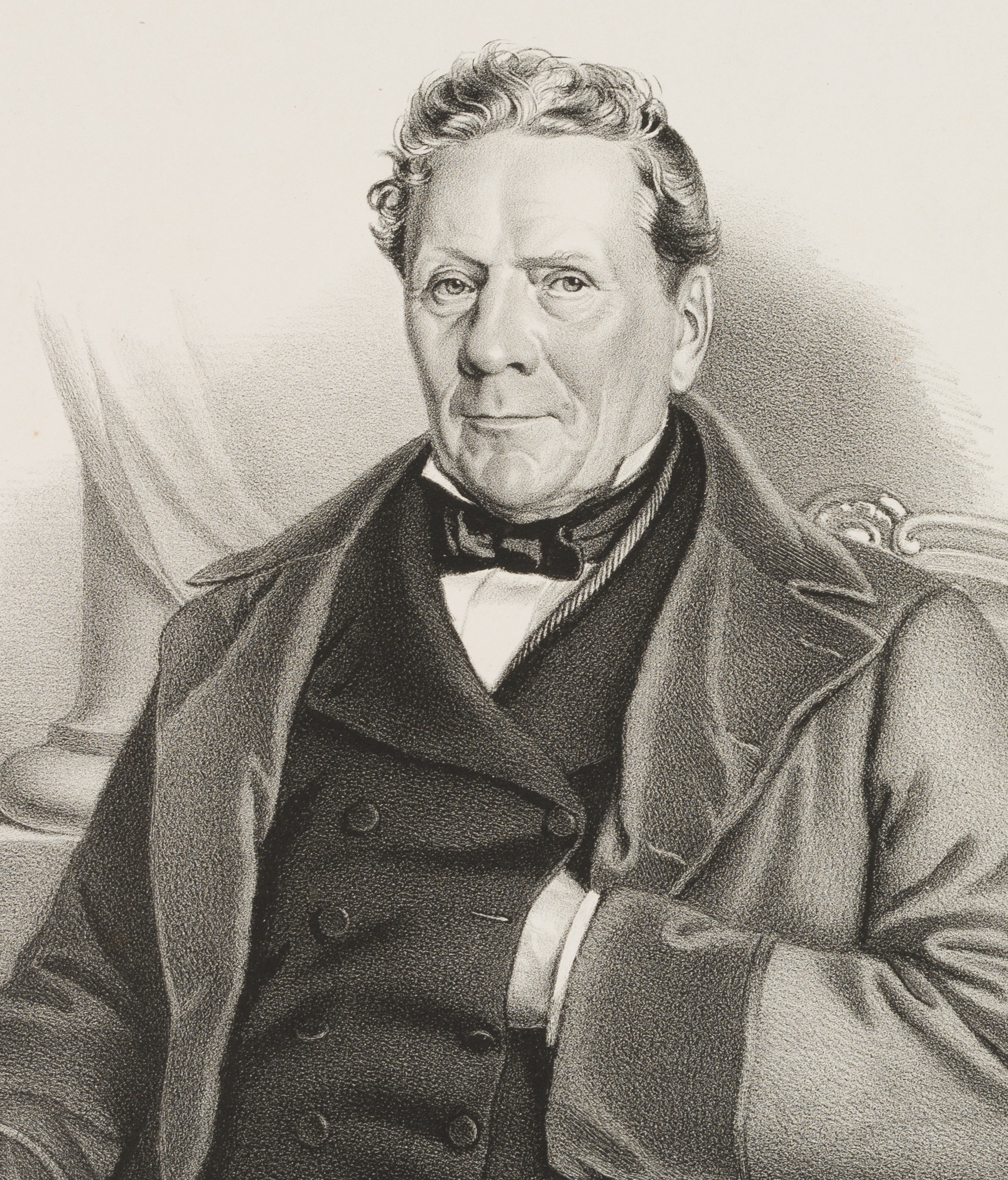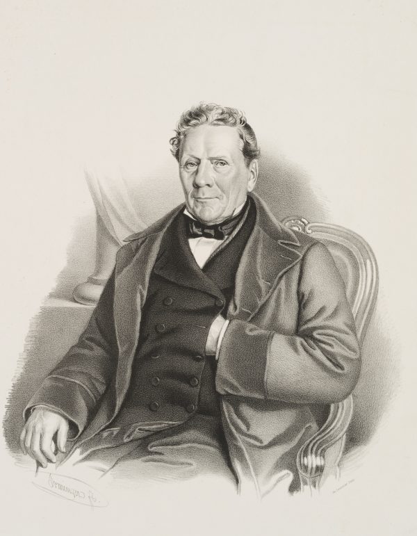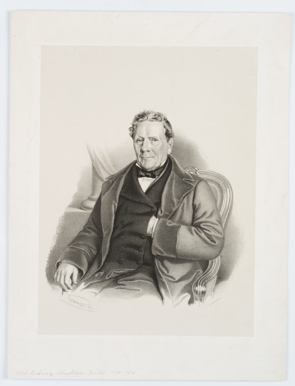Karl Friedrich Irminger (1813 Aadorf – 1863 Zurich), Portrait of Karl Ludwig Schultheis-Bürkli half-figured sitting on an armchair looking forward with left hand in waistcoat, c. 1850, Lithography