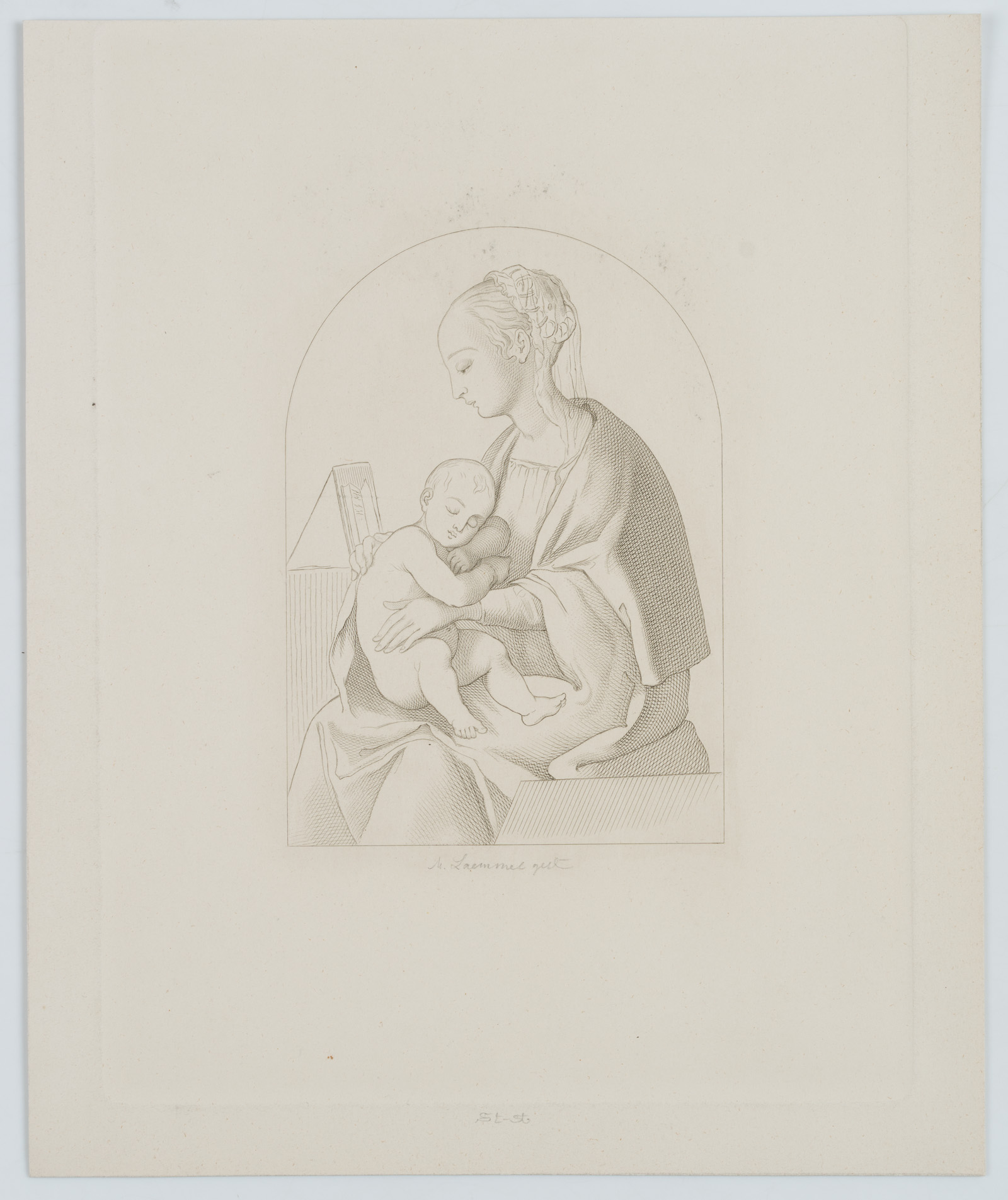 Karl Moritz Lämmel (1822 Leipzig – 1866 ), Madonna. Maria mit dem Kinde, 19. Jahrhundert, Stahlstich