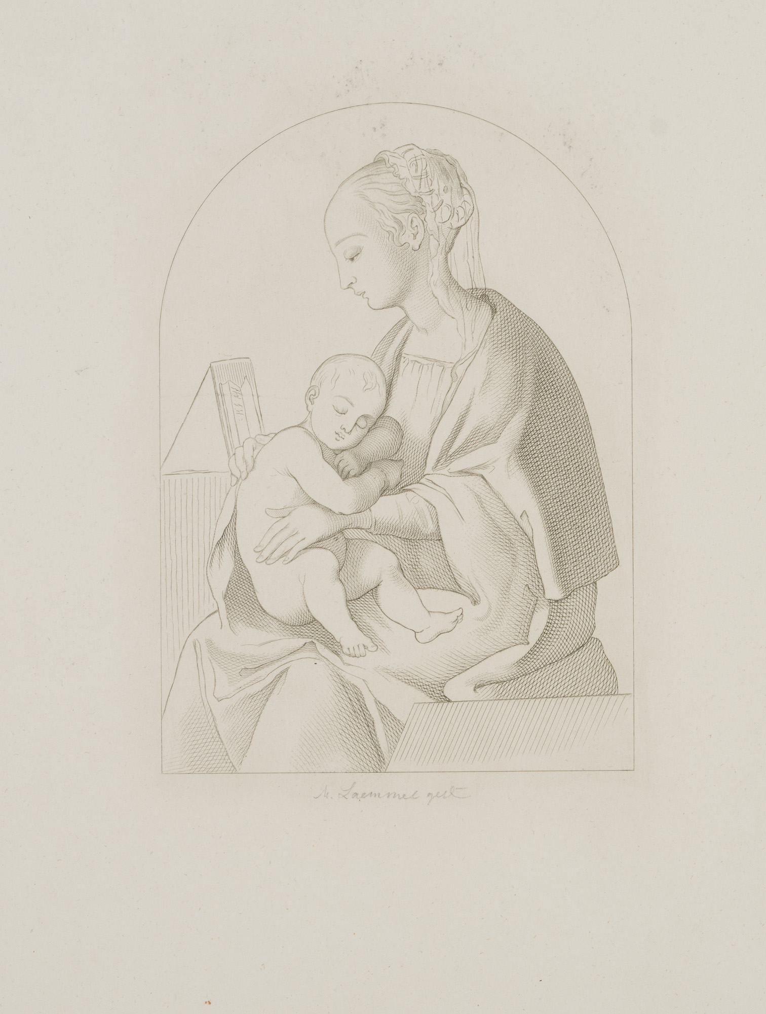 Karl Moritz Lämmel (1822 Leipzig – 1866 ), Madonna. Mary with the Child, 19th century, Steel engraving