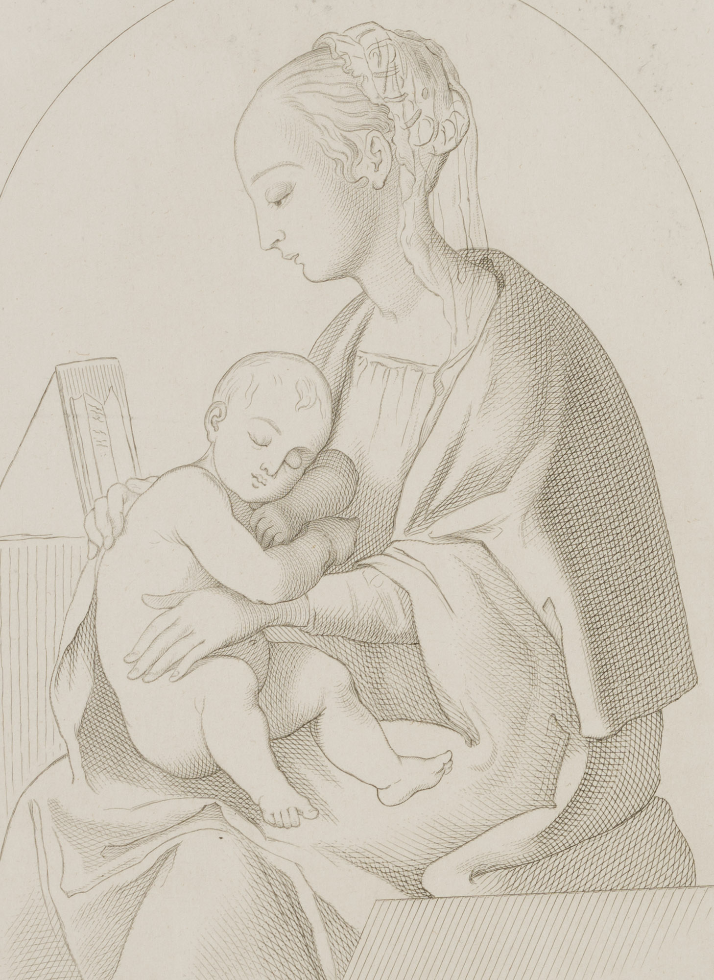 • Description: Mary holding the sleeping child Jesus in her arms.